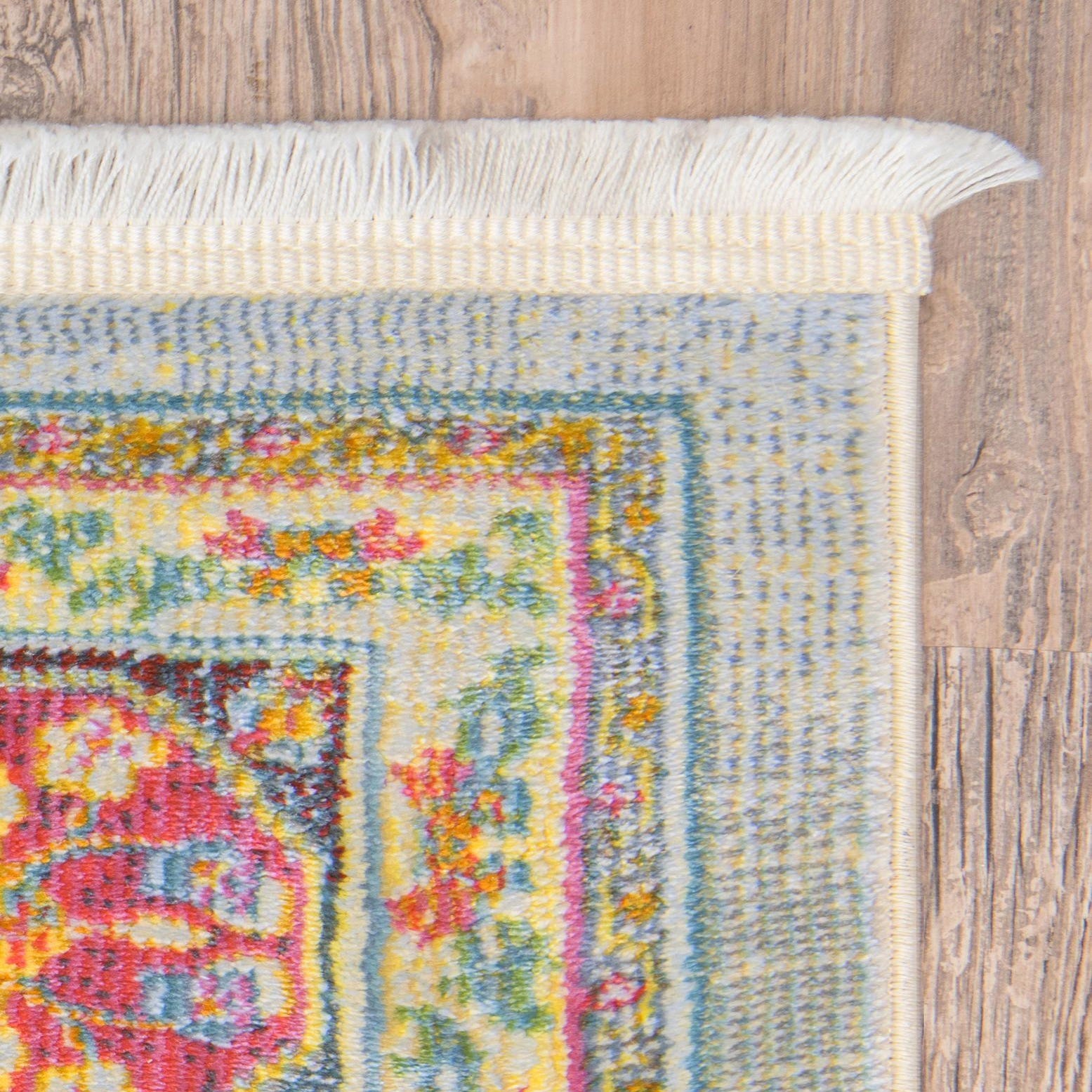 Primary color is Multi. Colors in this rug include: Multi, Blue, Burgundy, Gold, Orange, Red, Pink, Light Blue.