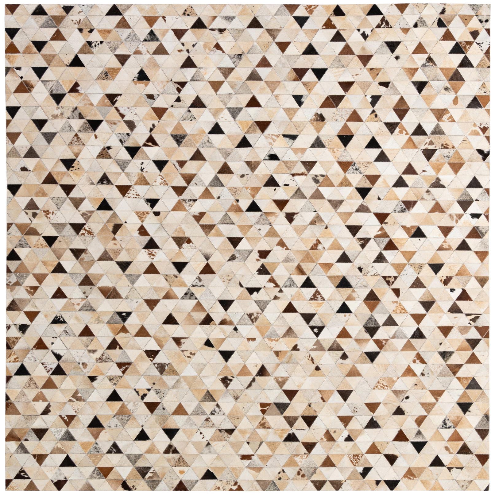 8x10 rectangular Cowhide - Patchwork rug featuring a modern geometric pattern of multi-colored natural cowhide triangles.