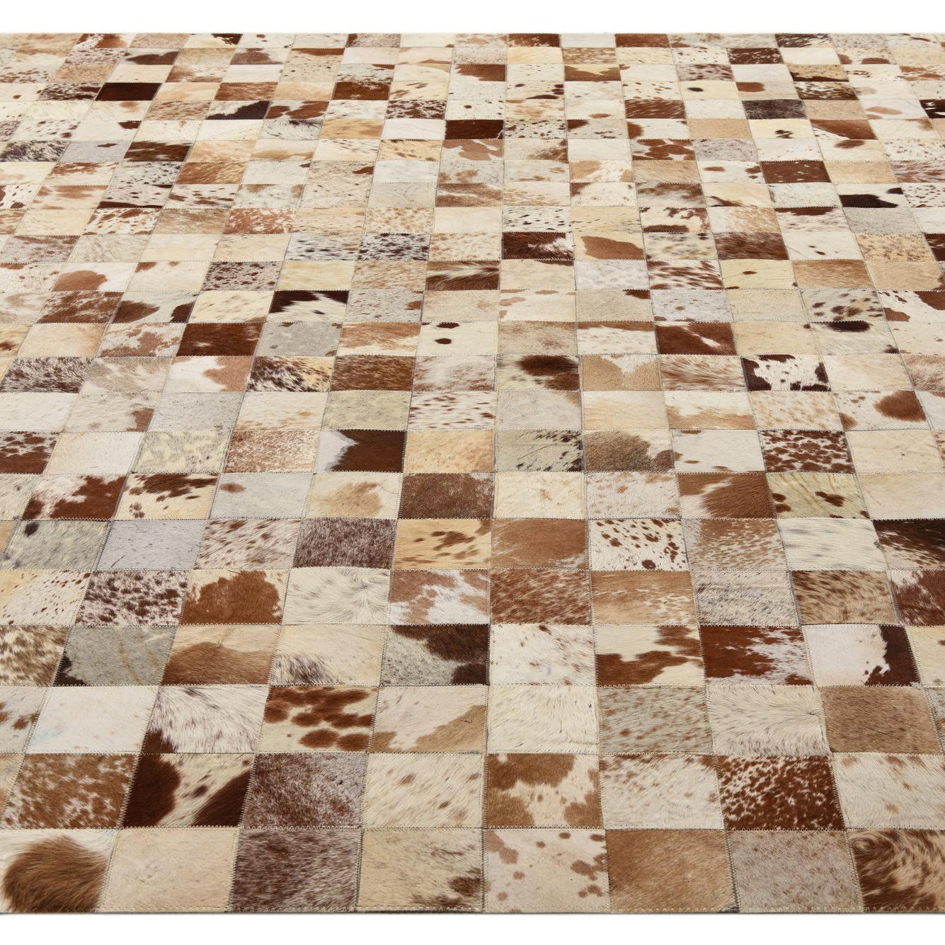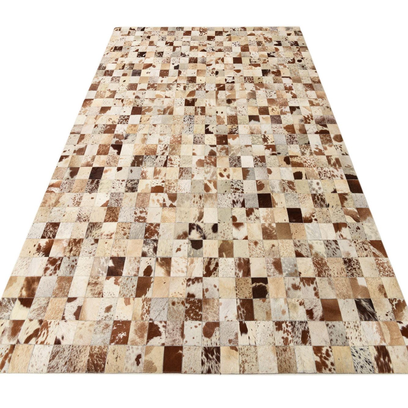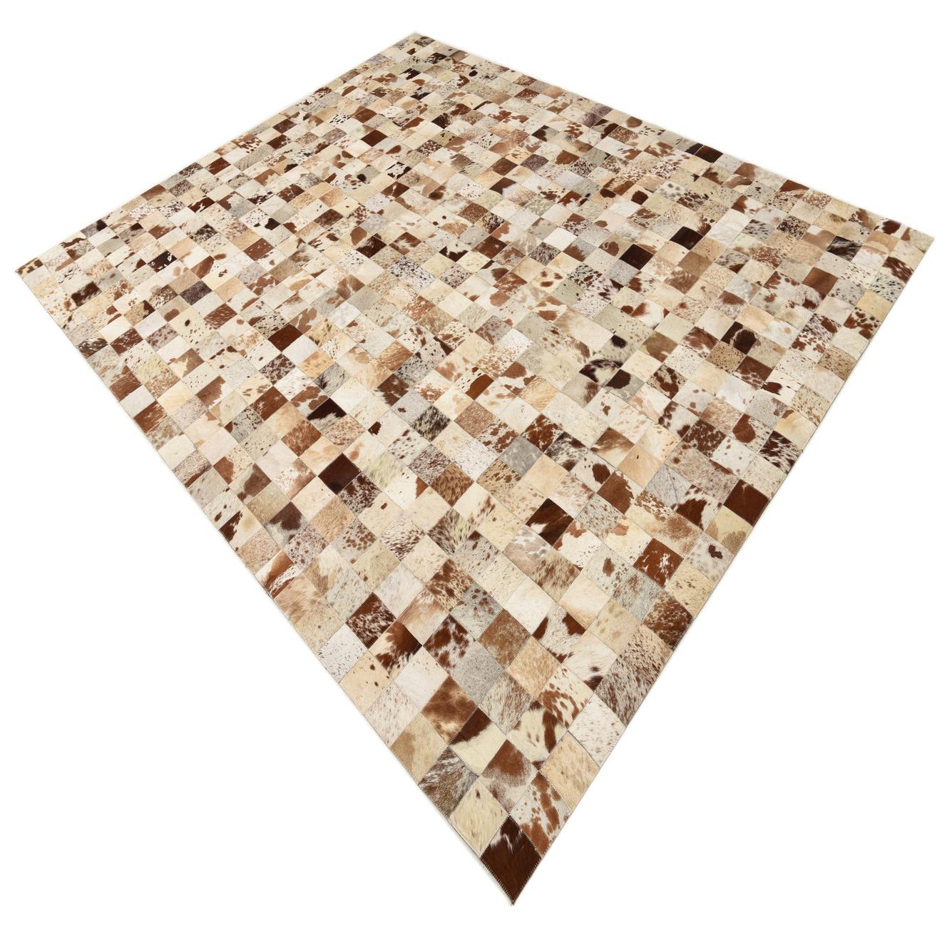 The Cowhide Leather rug's robust composition makes it a focal point in living rooms, studies, or large open spaces that benefit from its substantial size and visual interest. Its versatility allows it to serve both as a statement piece in a refined, monochromatic setting or as a complementary element in a more vibrant, pattern-rich environment.