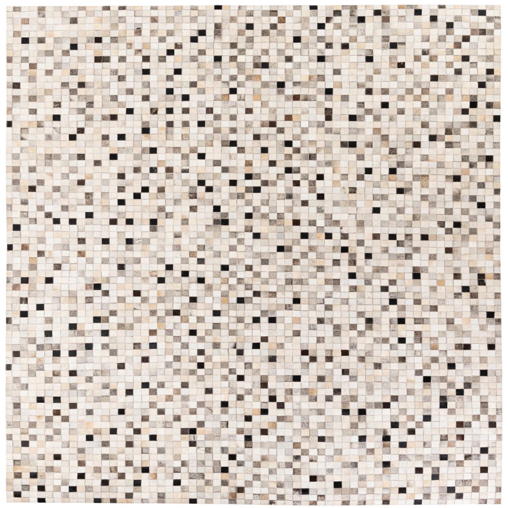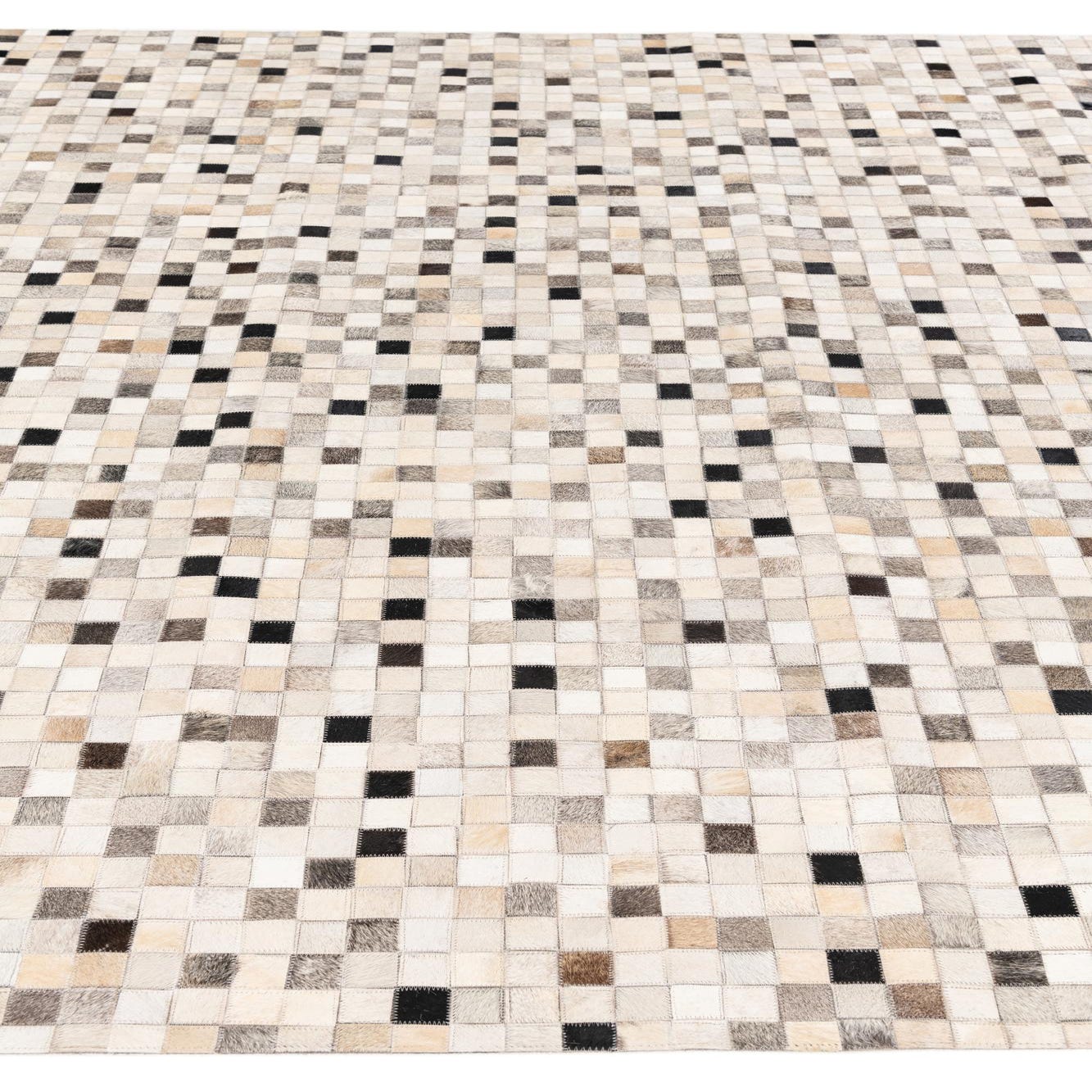 8x10 rectangular Cowhide Stocks rug featuring a modern mosaic pattern of multi-colored cowhide and leather squares.