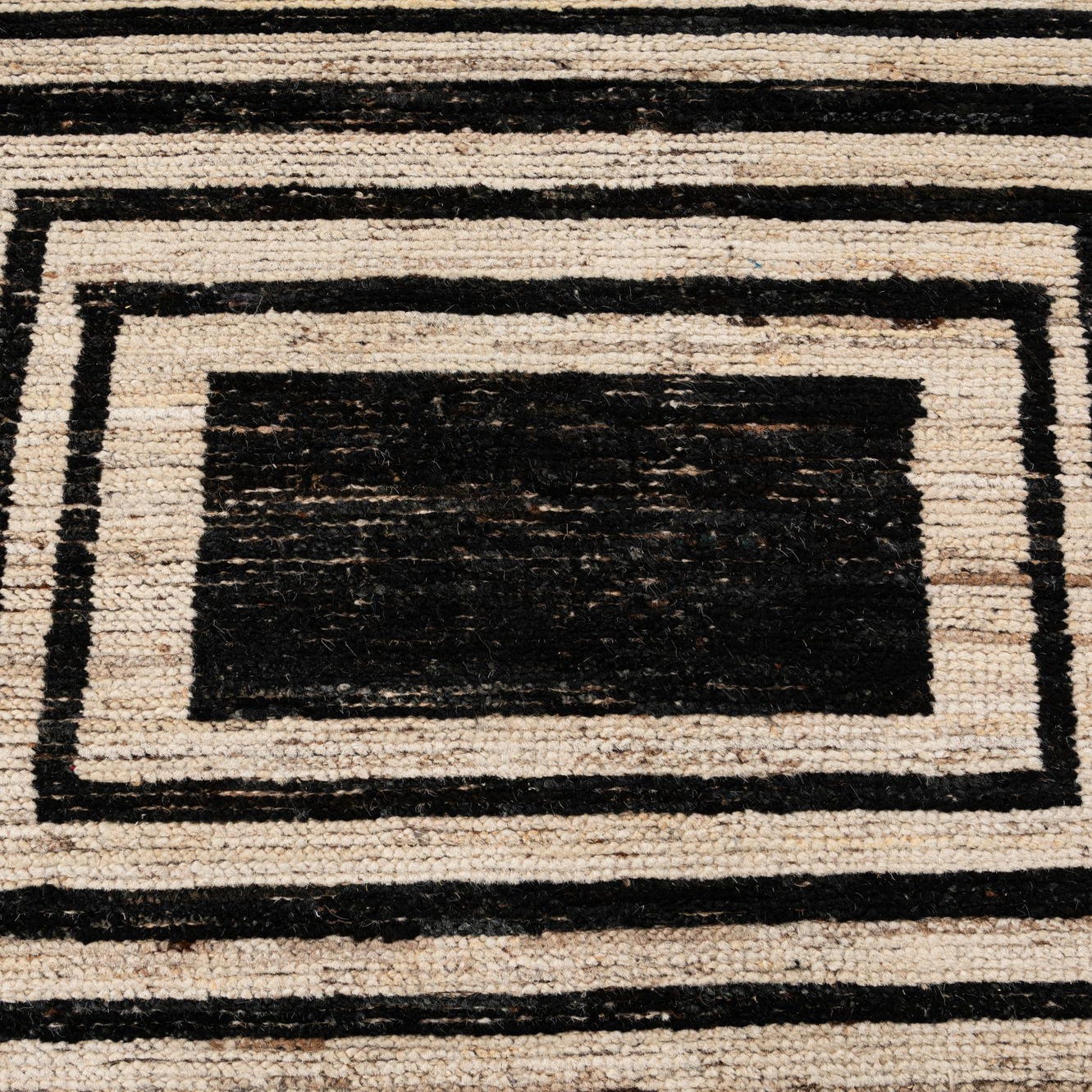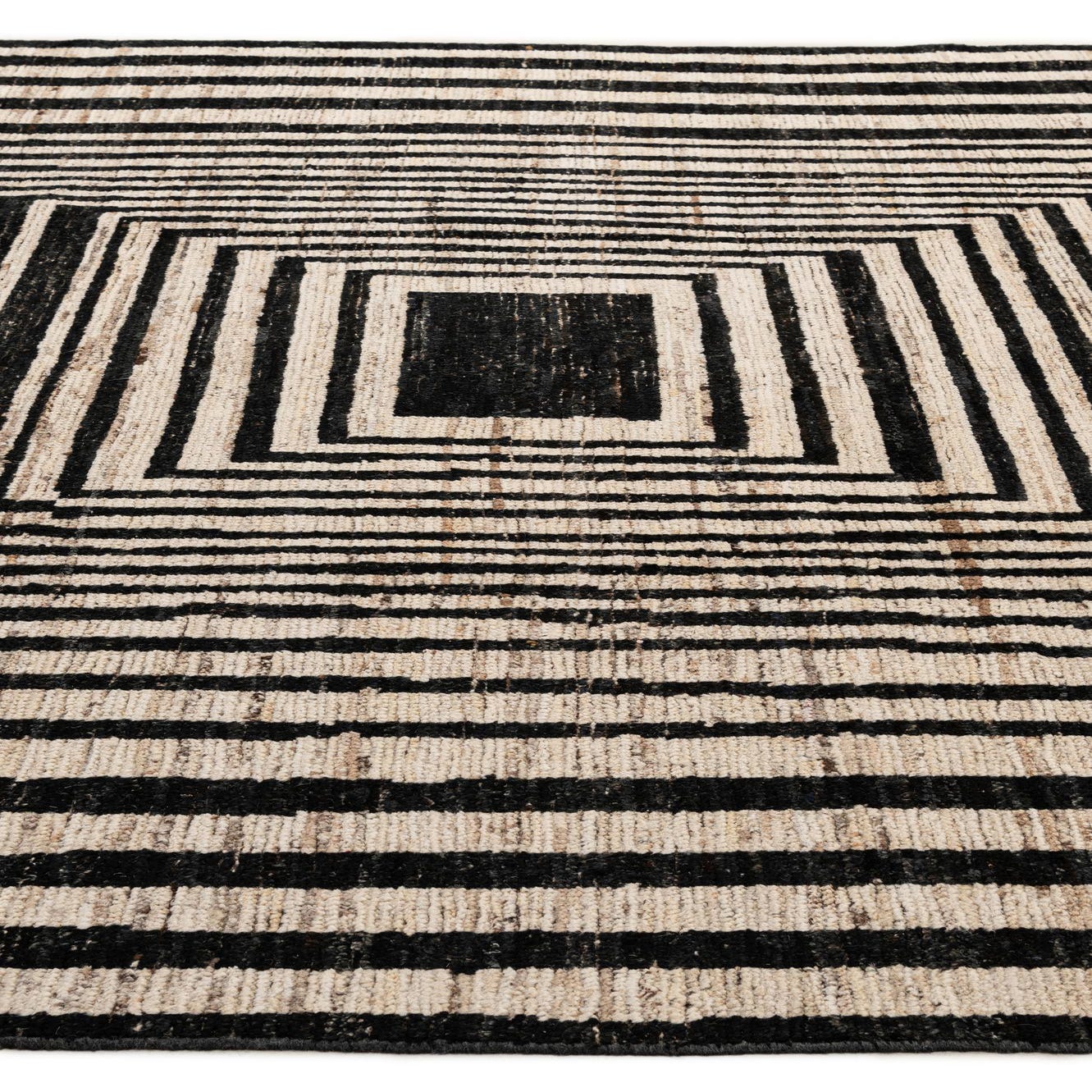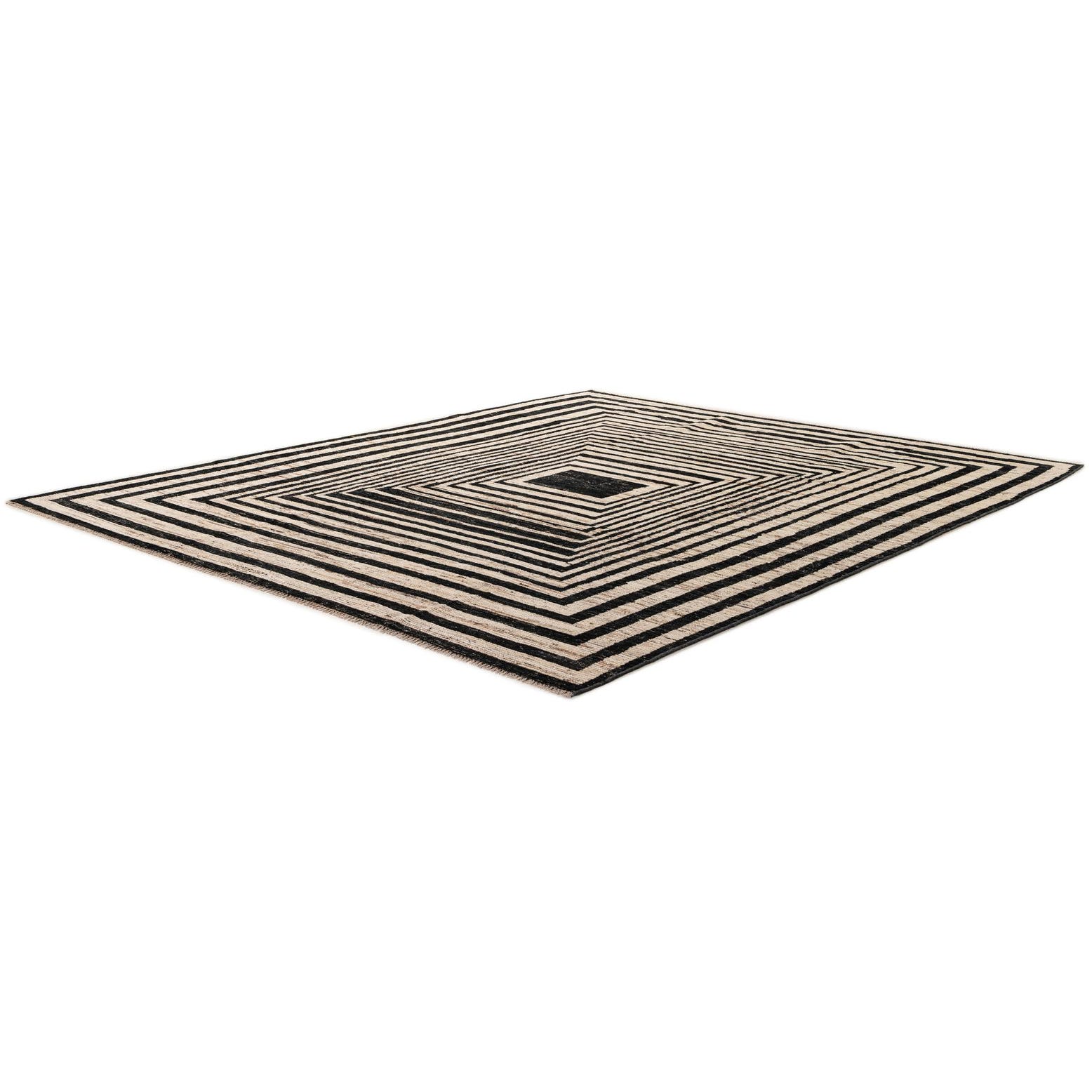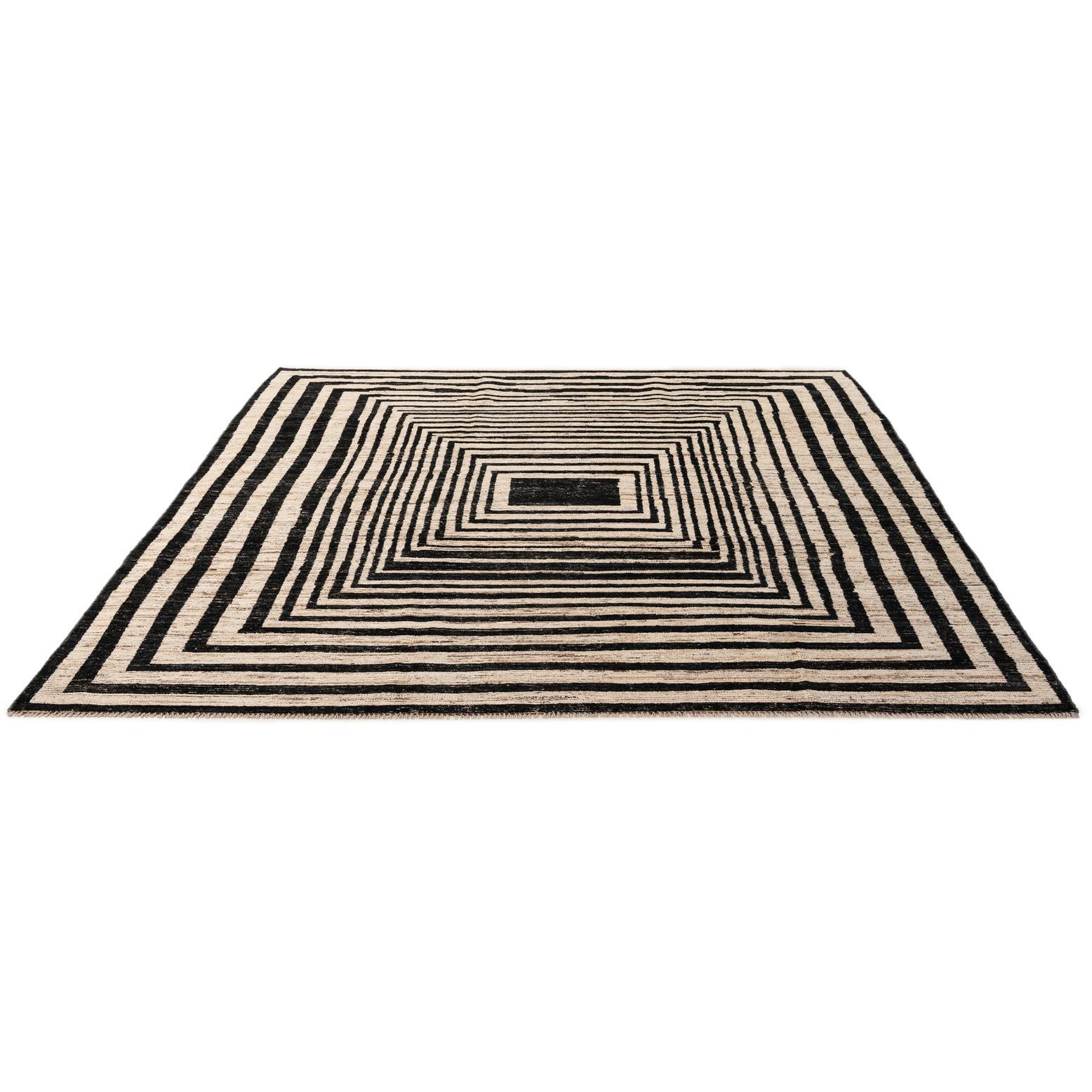 A rectangular 8x10 Darya rug with a bold black and off-white modern geometric pattern of concentric squares.