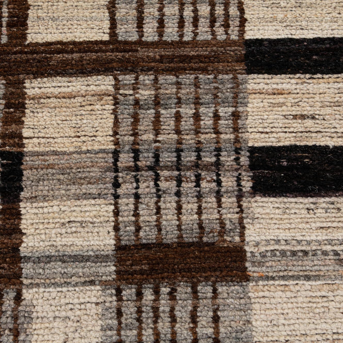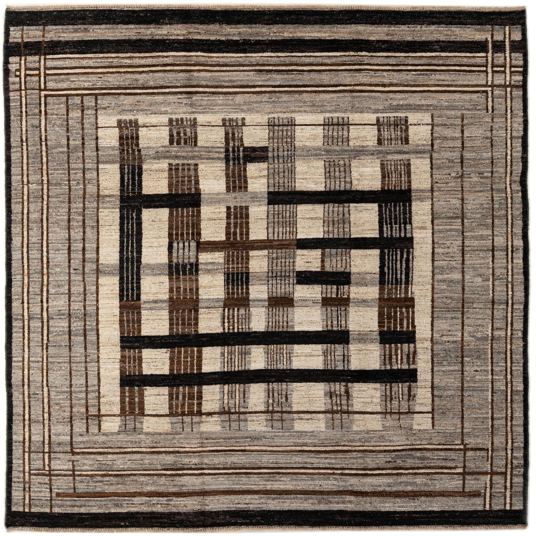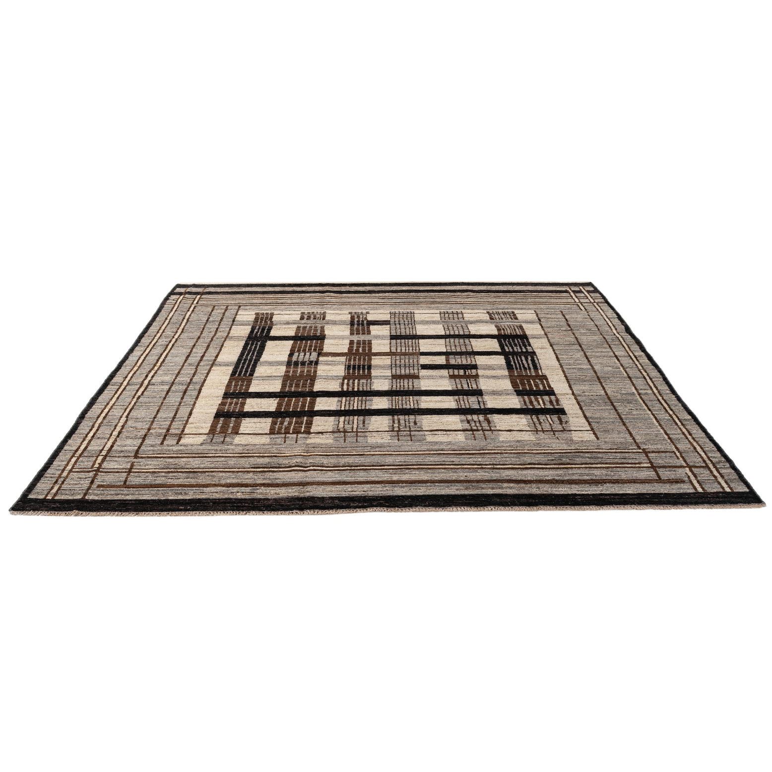 An 8x10 rectangular Darya wool rug featuring a modern multi-colored plaid pattern in shades of black, brown, and beige.