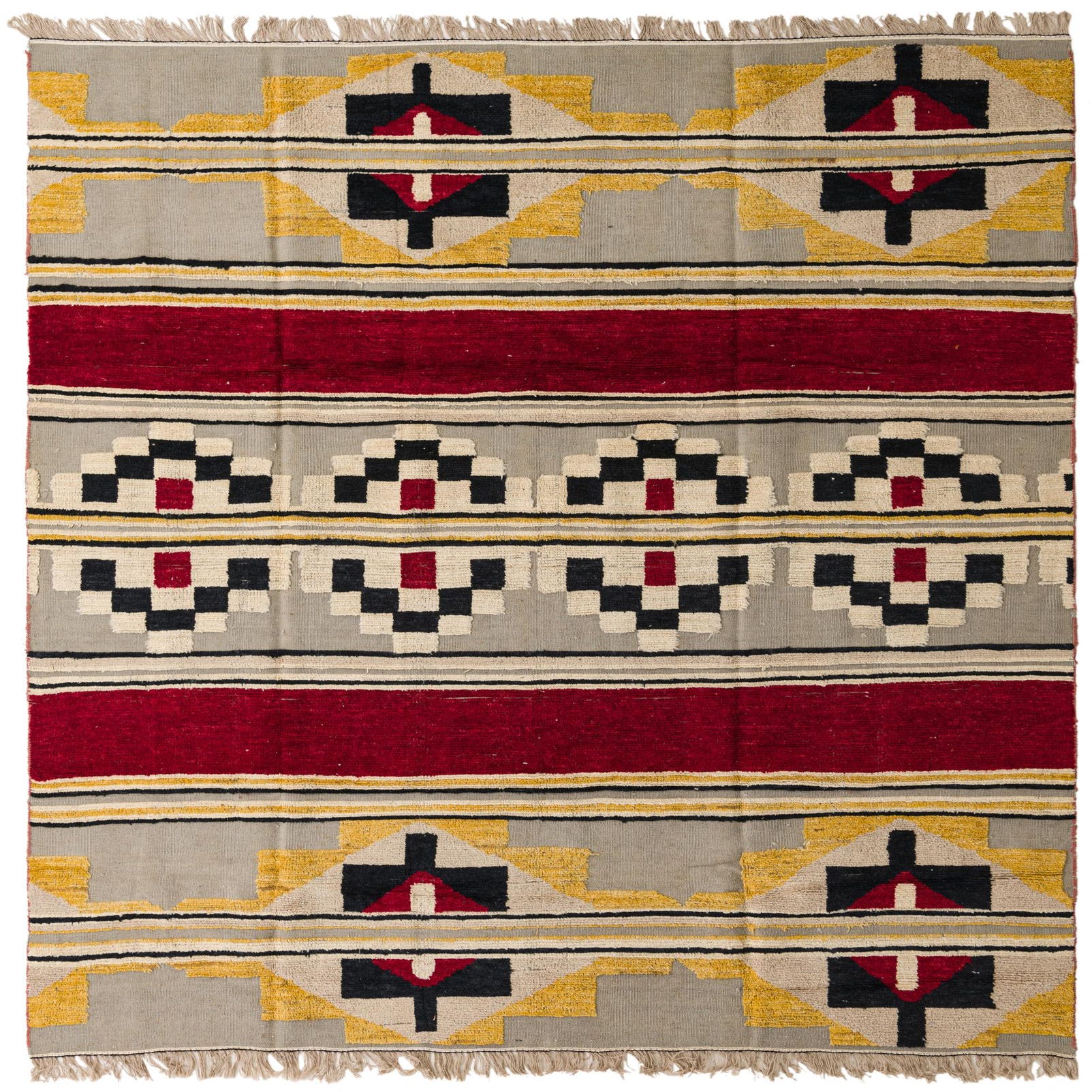 Primary color is Multi. Colors in this rug include: Multi, Black, Gray, Yellow, Ivory, Red.