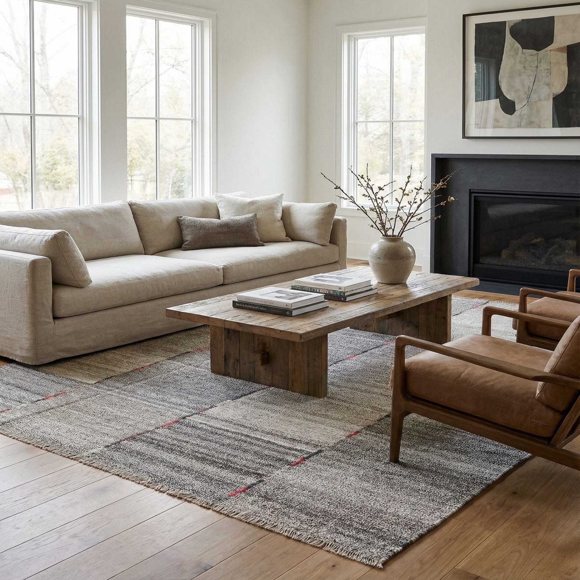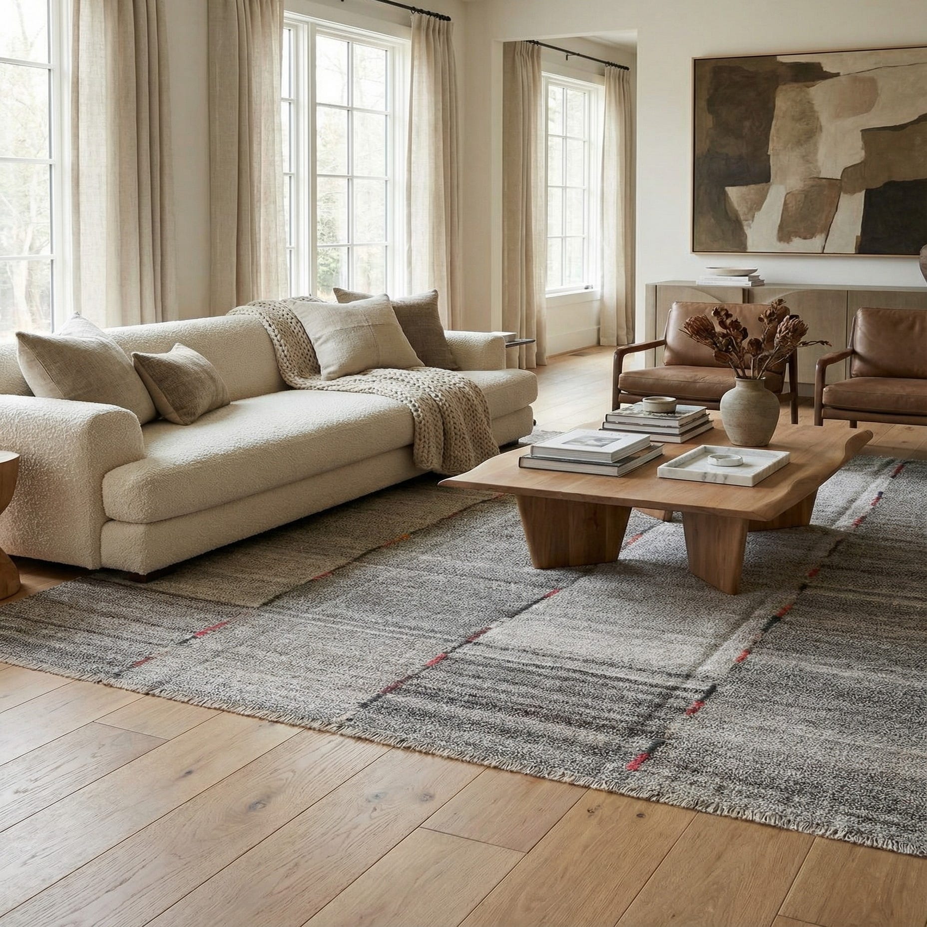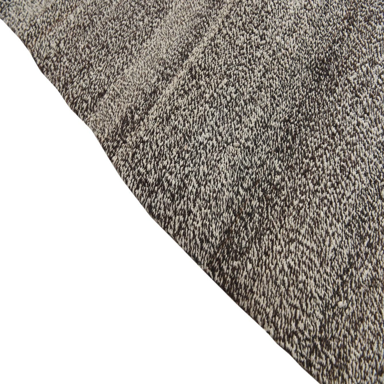 The addition of fringe at both ends adds a touch of artisanal charm, enhancing the rug's overall aesthetic appeal. The understated elegance of the color palette and the simplicity of the patterns make this rug highly versatile, suitable for a variety of interior design schemes ranging from minimalist and modern to more eclectic and bohemian settings. It can serve as a grounding element in a living room, under a dining table, or as an accent in a bedroom, seamlessly integrating with neutral-toned furniture and providing contrast to darker wood finishes.