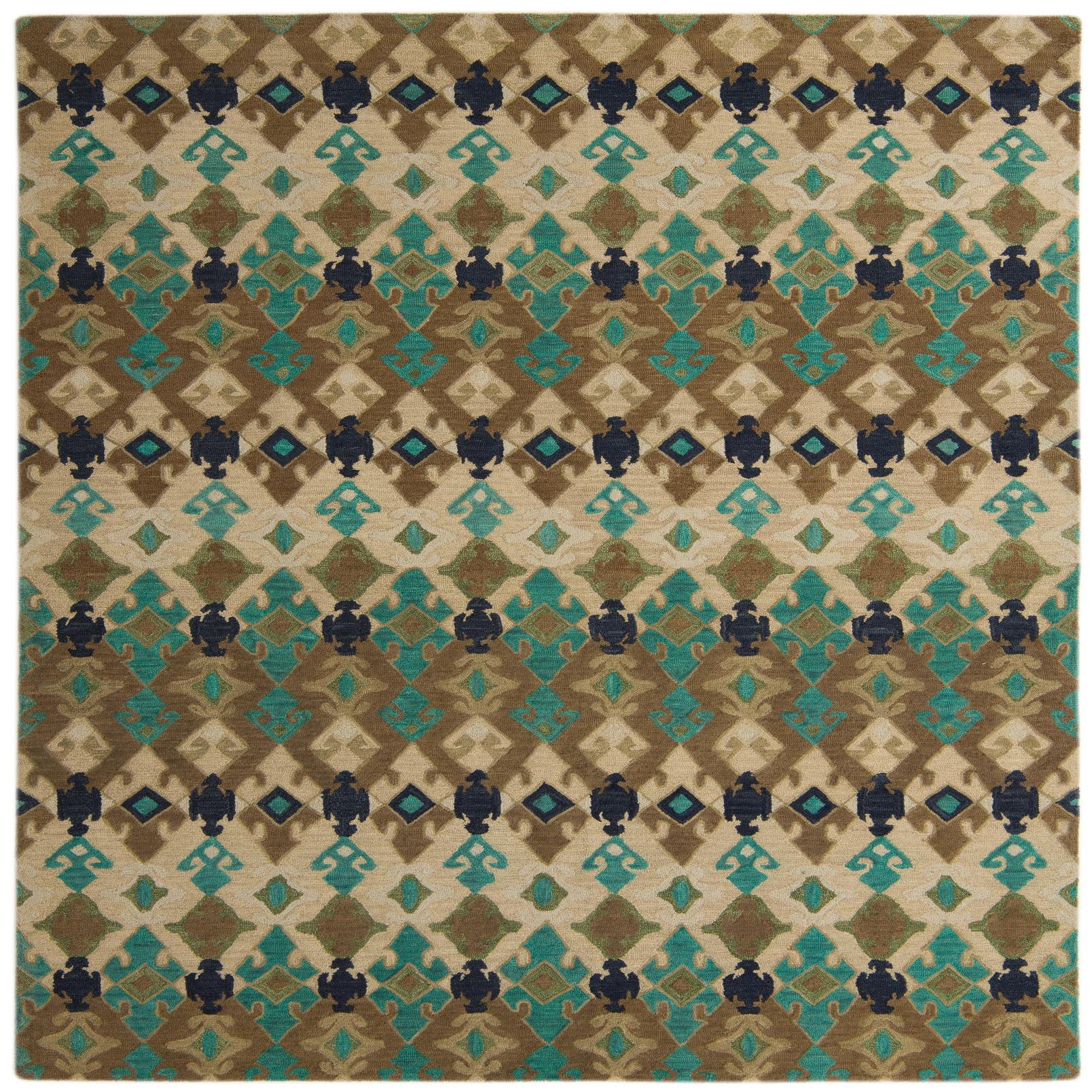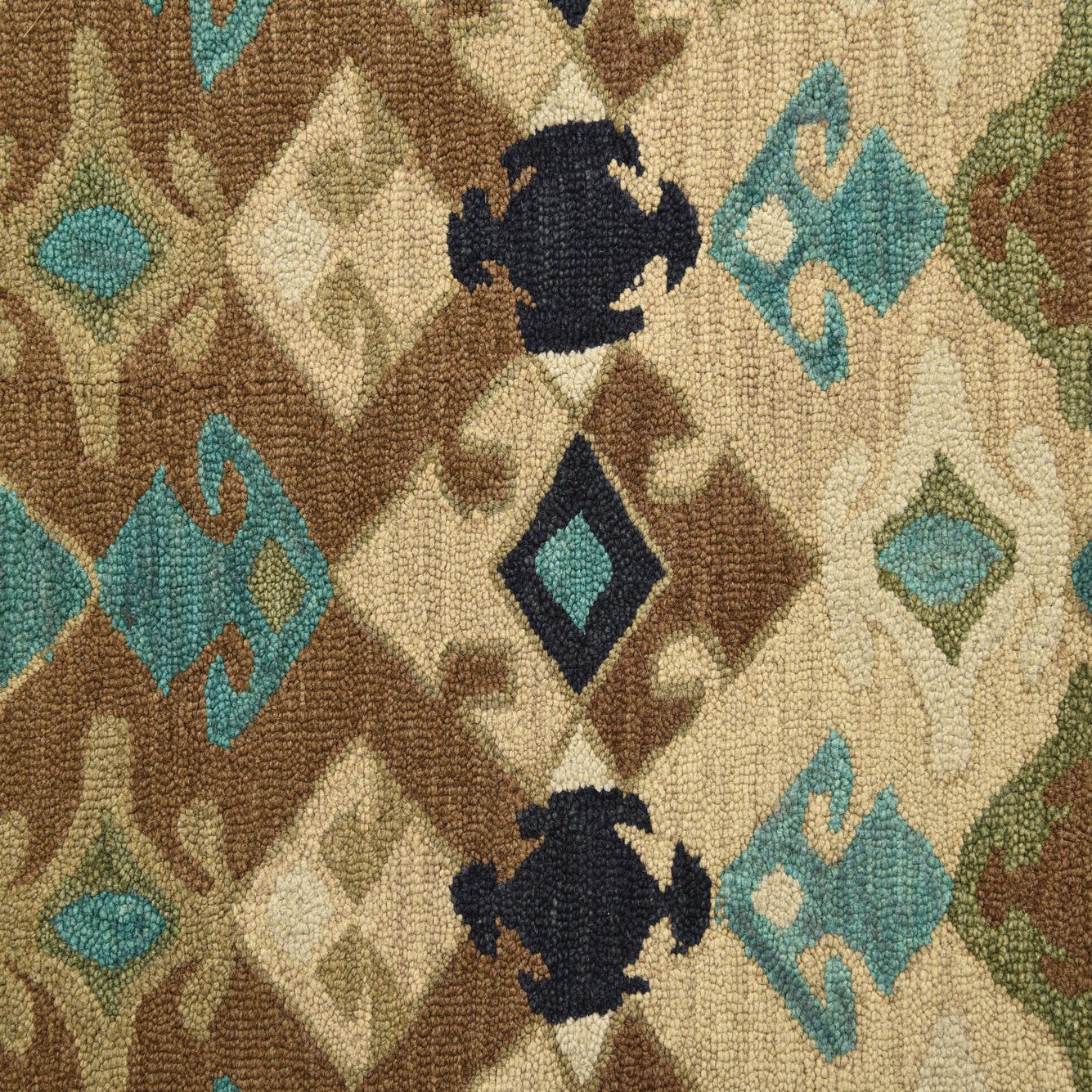 Primary color is Multi. Colors in this rug include: Multi, Beige, Brown, Green, Navy Blue, Tan, Turquoise, Ivory.
