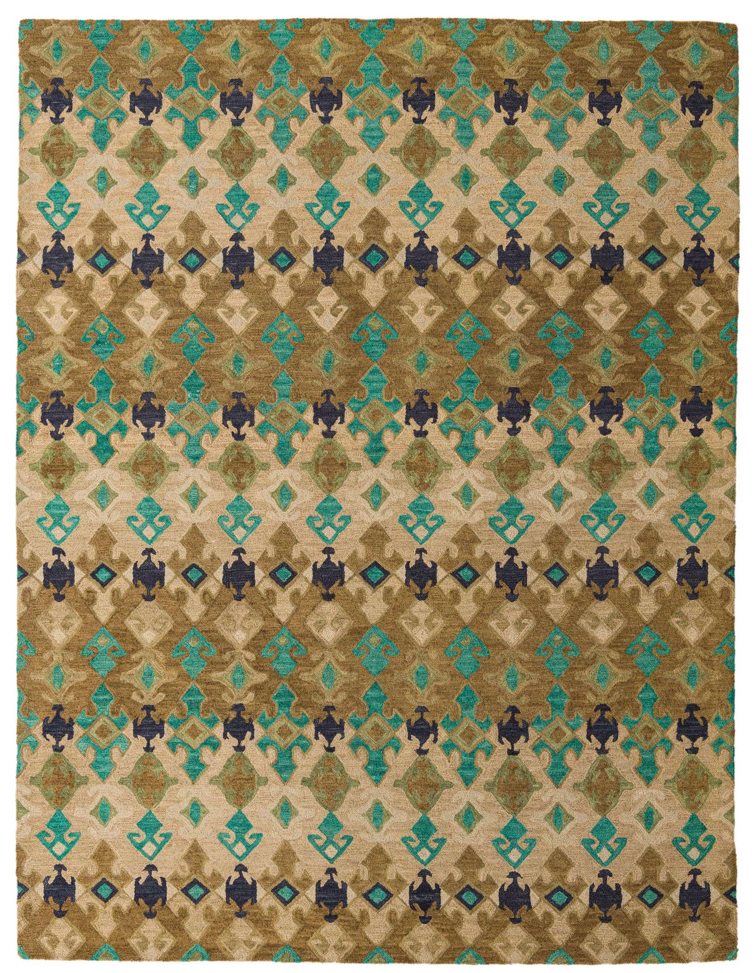 Primary color is Multi. Colors in this rug include: Multi, Beige, Brown, Navy Blue, Olive, Teal.