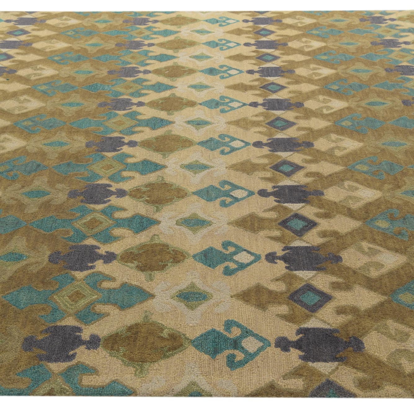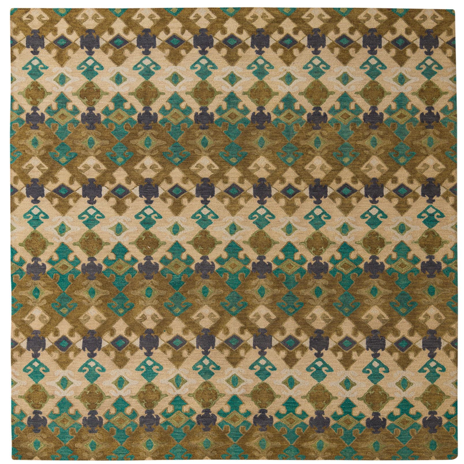 Primary color is Multi. Colors in this rug include: Multi, Brown, Green, Navy Blue, Olive, Teal.