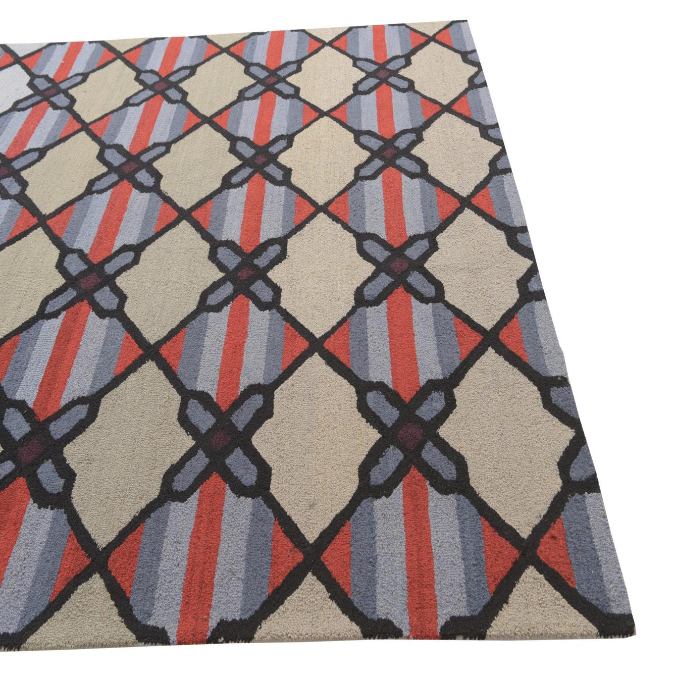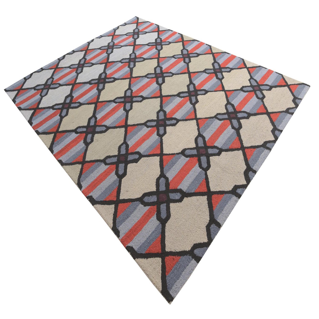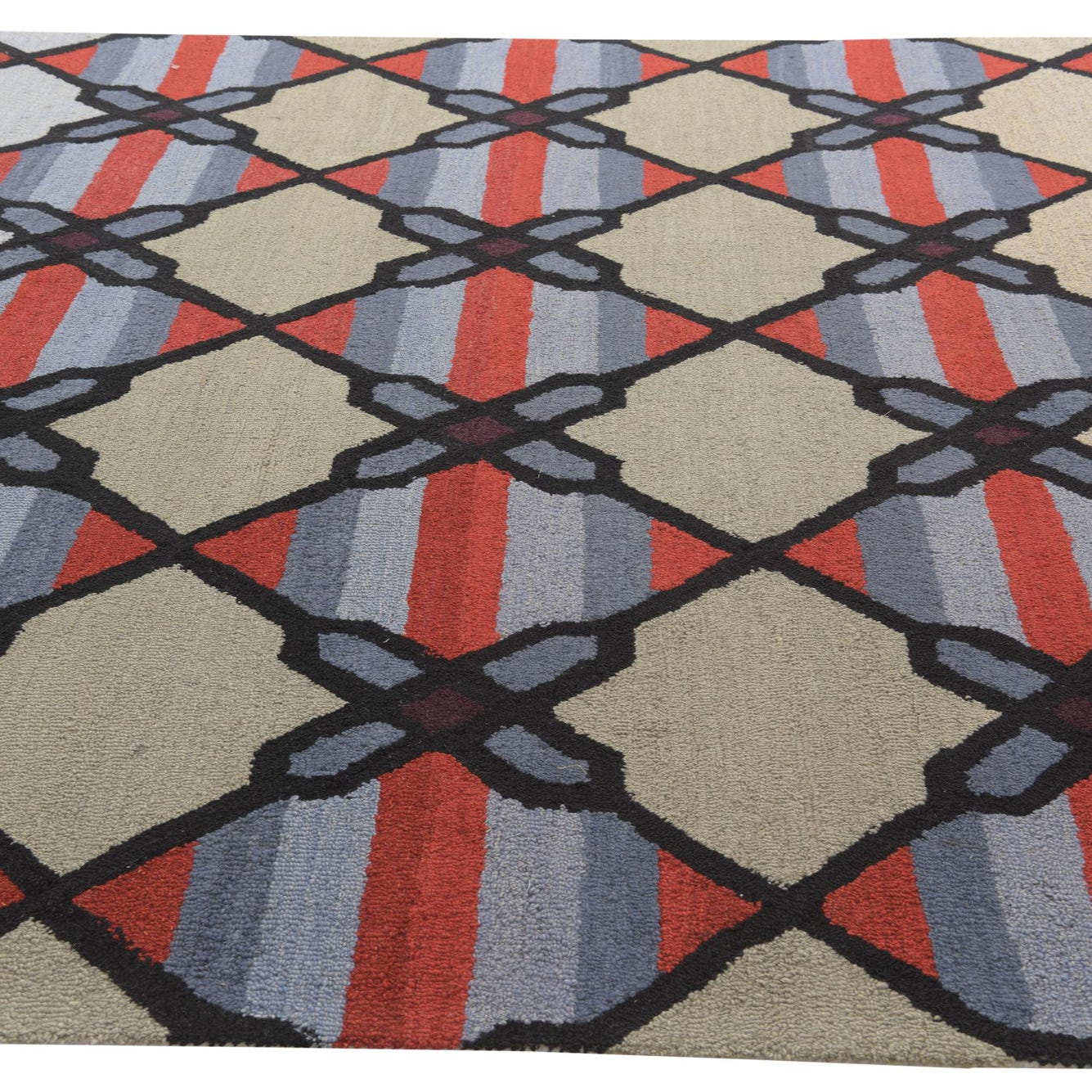 The rug's bold pattern and rich color scheme make it a statement piece that can anchor a room with a modern or eclectic aesthetic. Its generous size and distinct design are well-suited for a living room, dining area, or other spacious environments seeking an injection of personality. The wool construction provides a comfortable underfoot feel, further enhancing the rug's functional appeal.