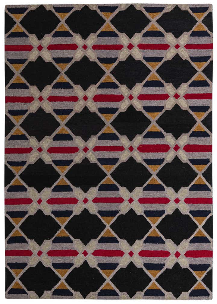 Primary color is Multi. Colors in this rug include: Multi, Beige, Black, Gray, Navy Blue, Red, Light Blue.
