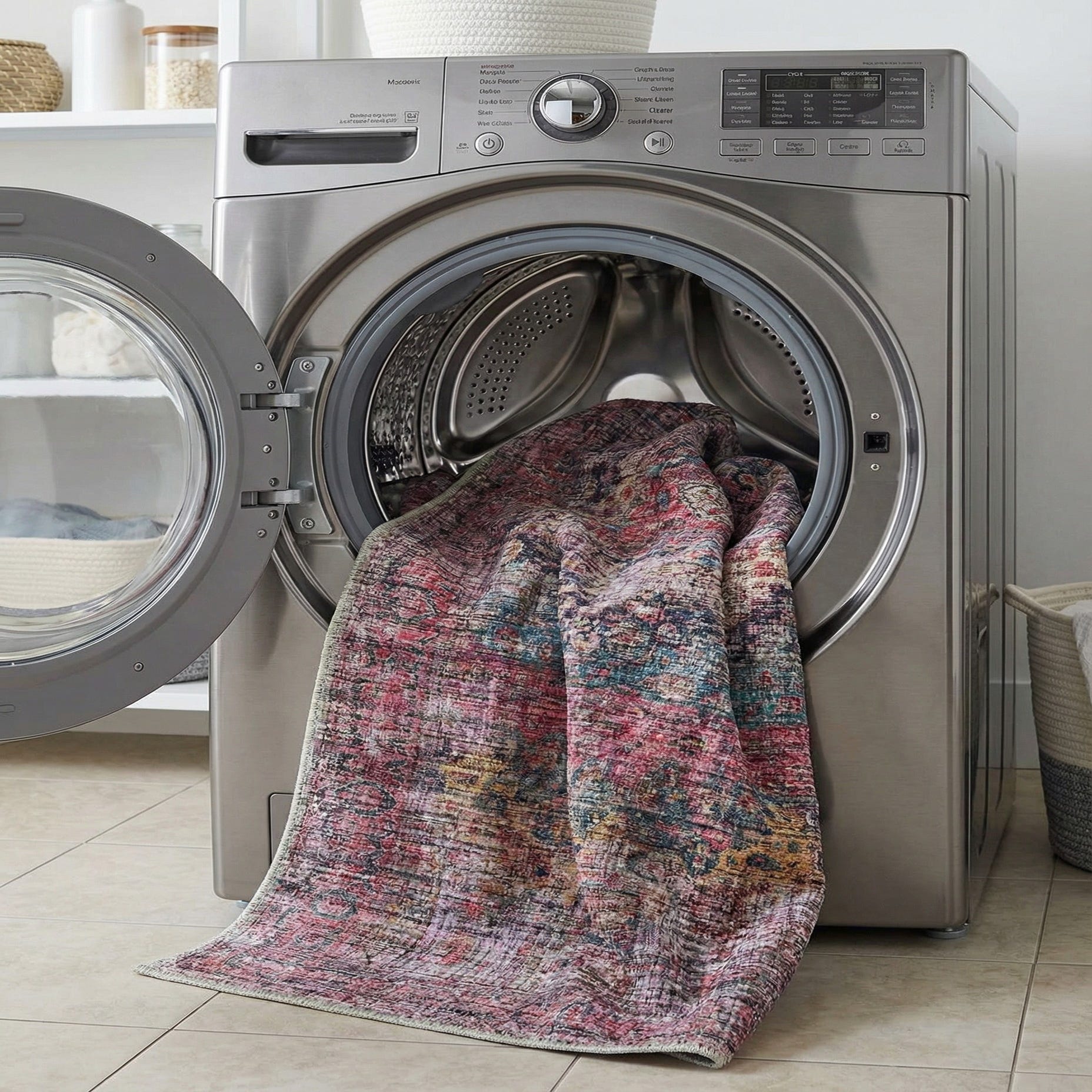 Its stain-resistant and shed-free properties make this rug exceedingly practical for high-traffic areas and households with pets. The flatweave construction and the use of recycled materials in its composition underscore both durability and environmental consciousness. As a machine-washable item, maintenance is straightforward, ensuring that the vibrancy of its colors and the integrity of its texture remain intact over time.