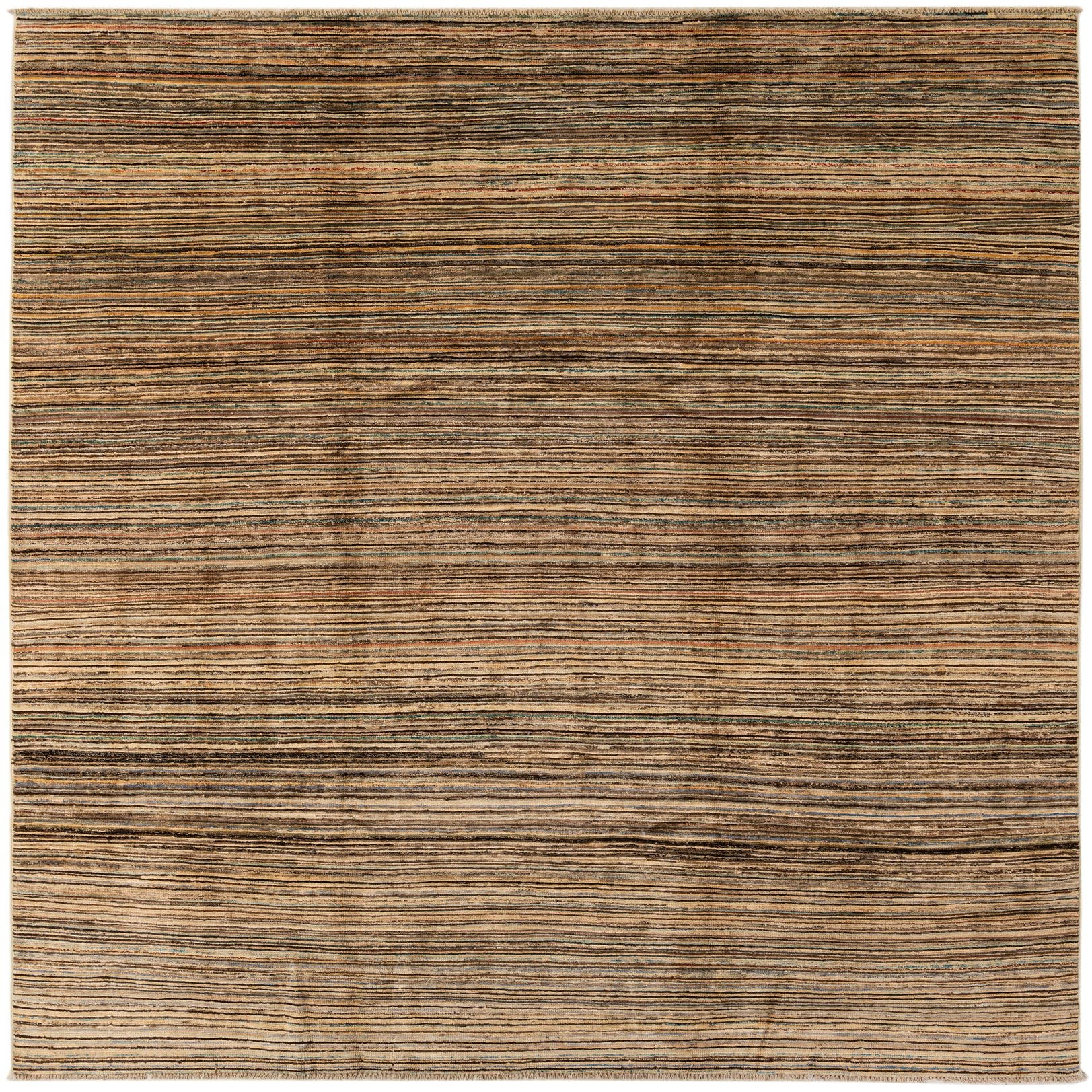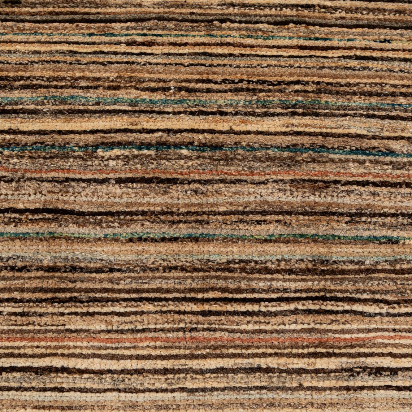 A rectangular 8x10 Modern Ziegler rug by Rugs.com, featuring horizontal stripes in various multi-colored tones, suitable for a living room.