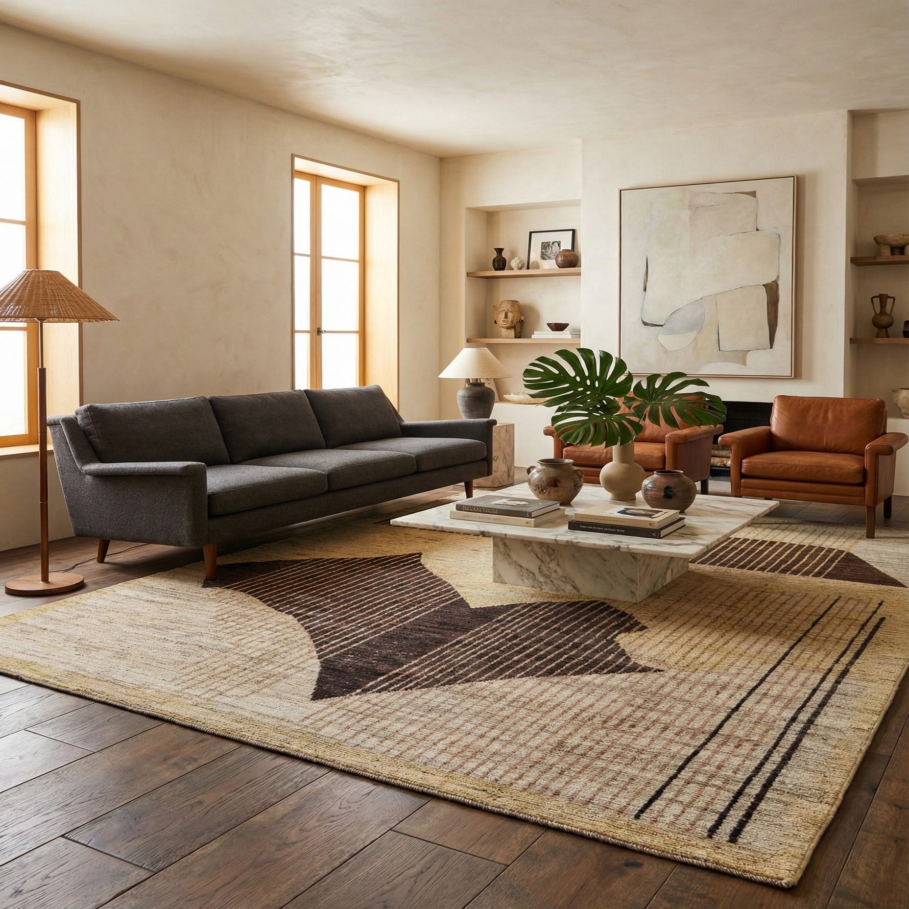 Primary color is Multi. Colors in this rug include: Multi, Brown, Cream, Ivory, Yellow, Black.