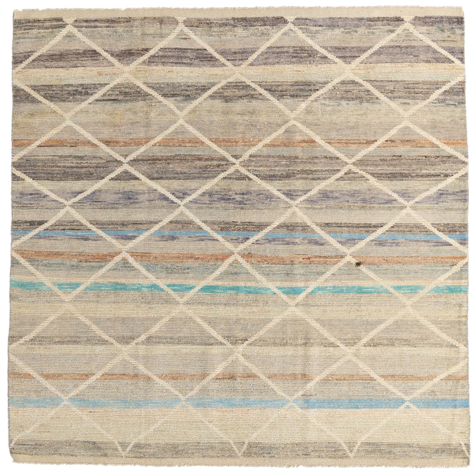 Finished with a fringed edge, this rug adds an element of traditional craft to its modern design, bridging the gap between classic and contemporary styles. This rug's neutral and adaptable color scheme allows it to seamlessly integrate with a wide range of interior settings, from minimalistic and Scandinavian designs to more eclectic and bohemian spaces. It is particularly well-suited to act as a grounding element in a living room, dining area, or large foyer, where its artisanal qualities and inviting texture can be fully appreciated.