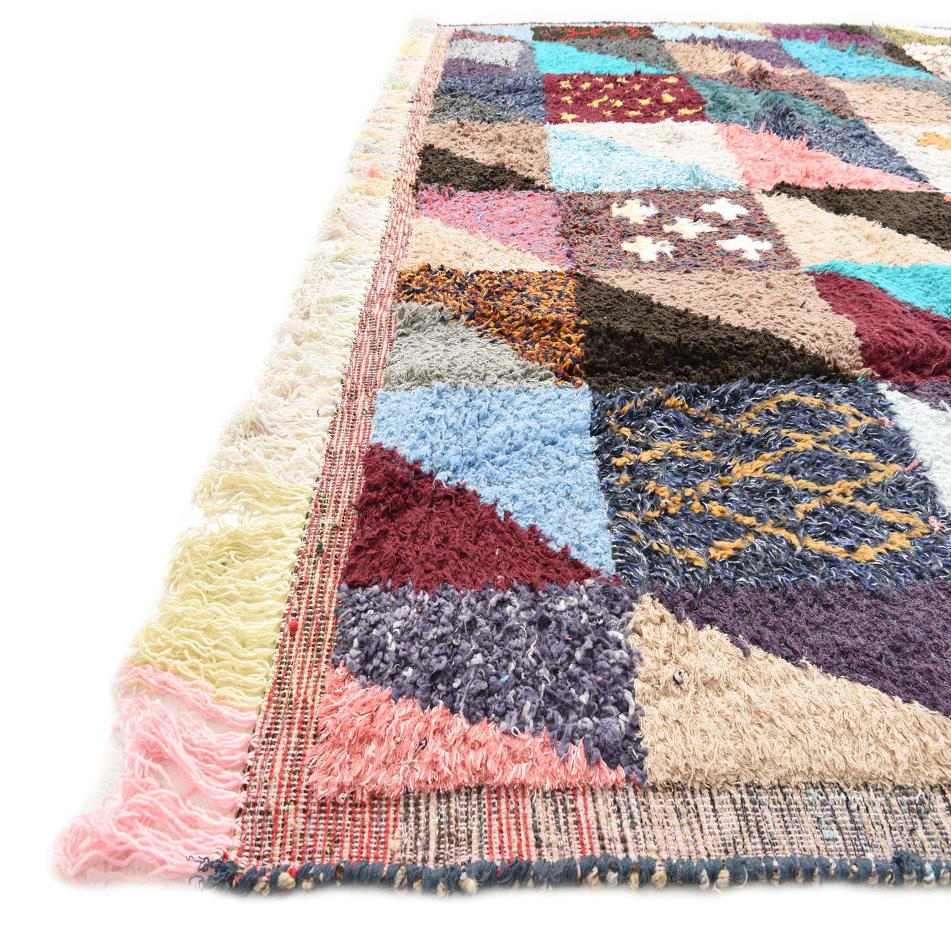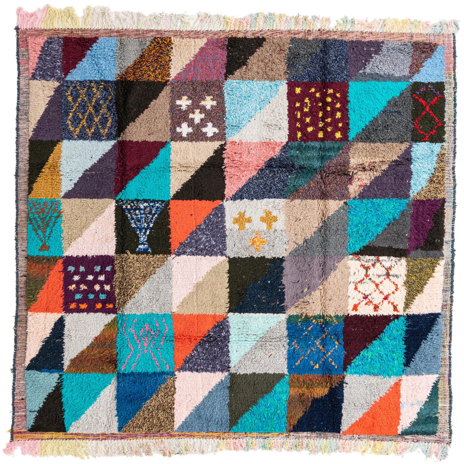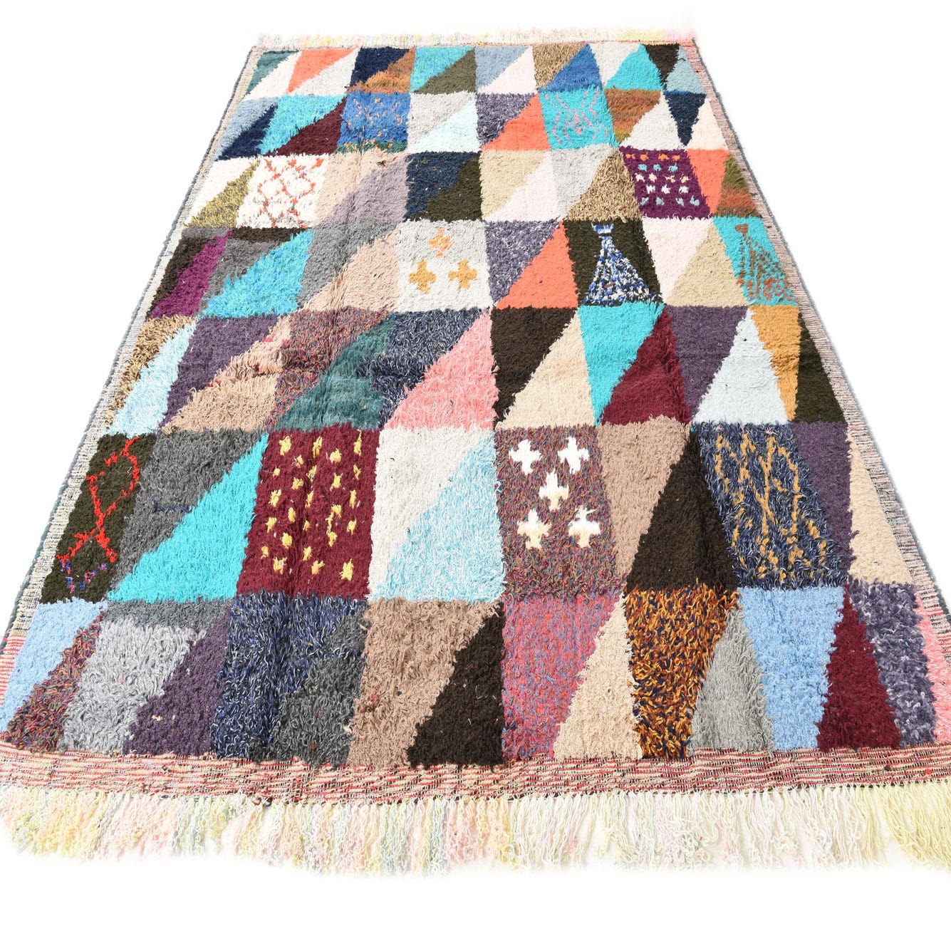 This piece would thrive in an interior that appreciates a mix of traditional craftsmanship and contemporary design. It could serve as a statement centerpiece in a minimalist space to inject color and interest or complement an eclectic decor where it would harmonize with a variety of global accents. The diverse color spectrum within the rug can tie together a variety of color stories in a room, making it a flexible choice for many palettes. It is suitable for living rooms, dining areas, or any space in need of a tactile and visual focal point.