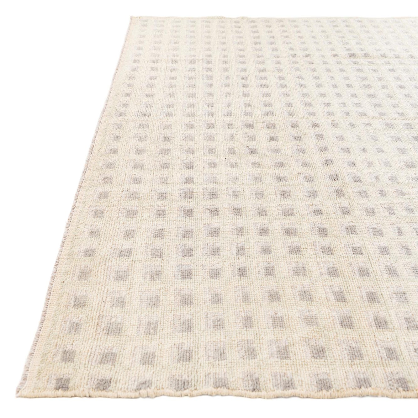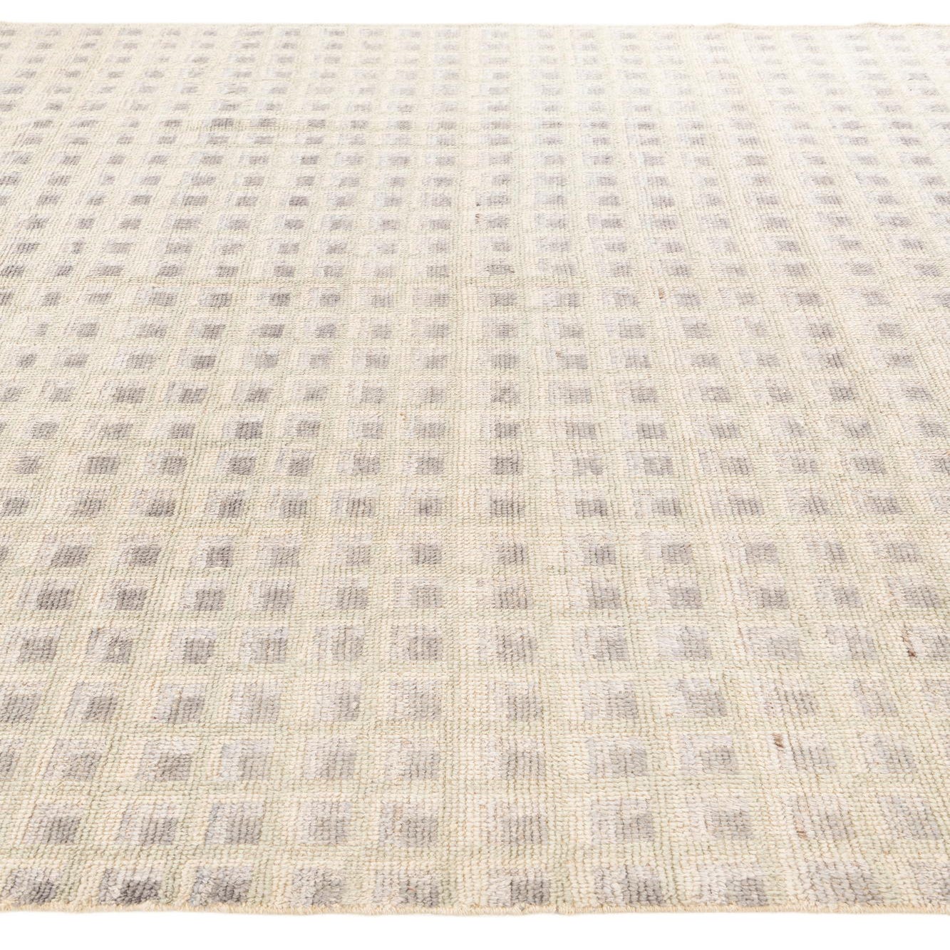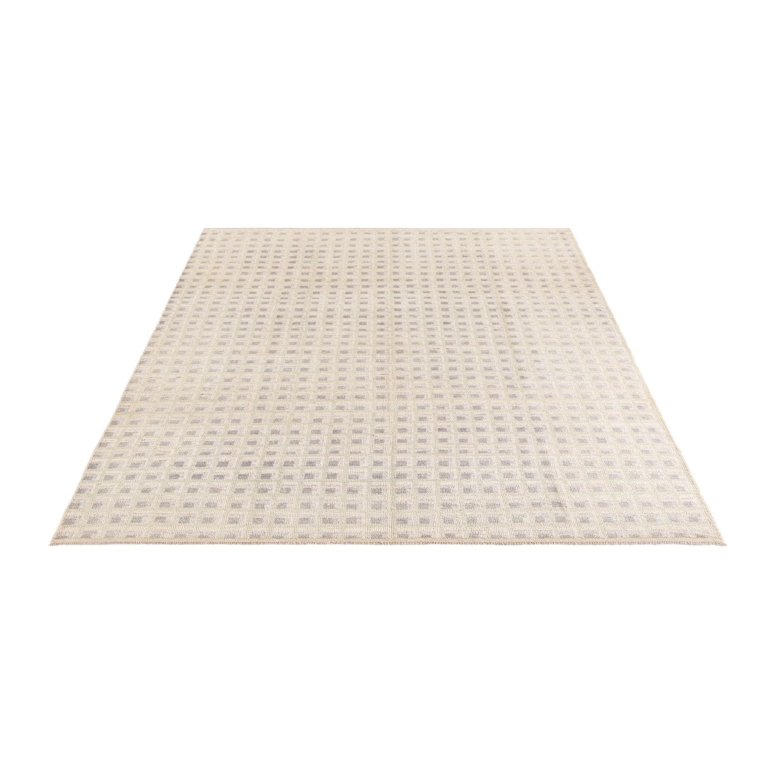 A rectangular 8x10 multi-colored wool shag rug featuring a grid of small grey squares on a cream background.
