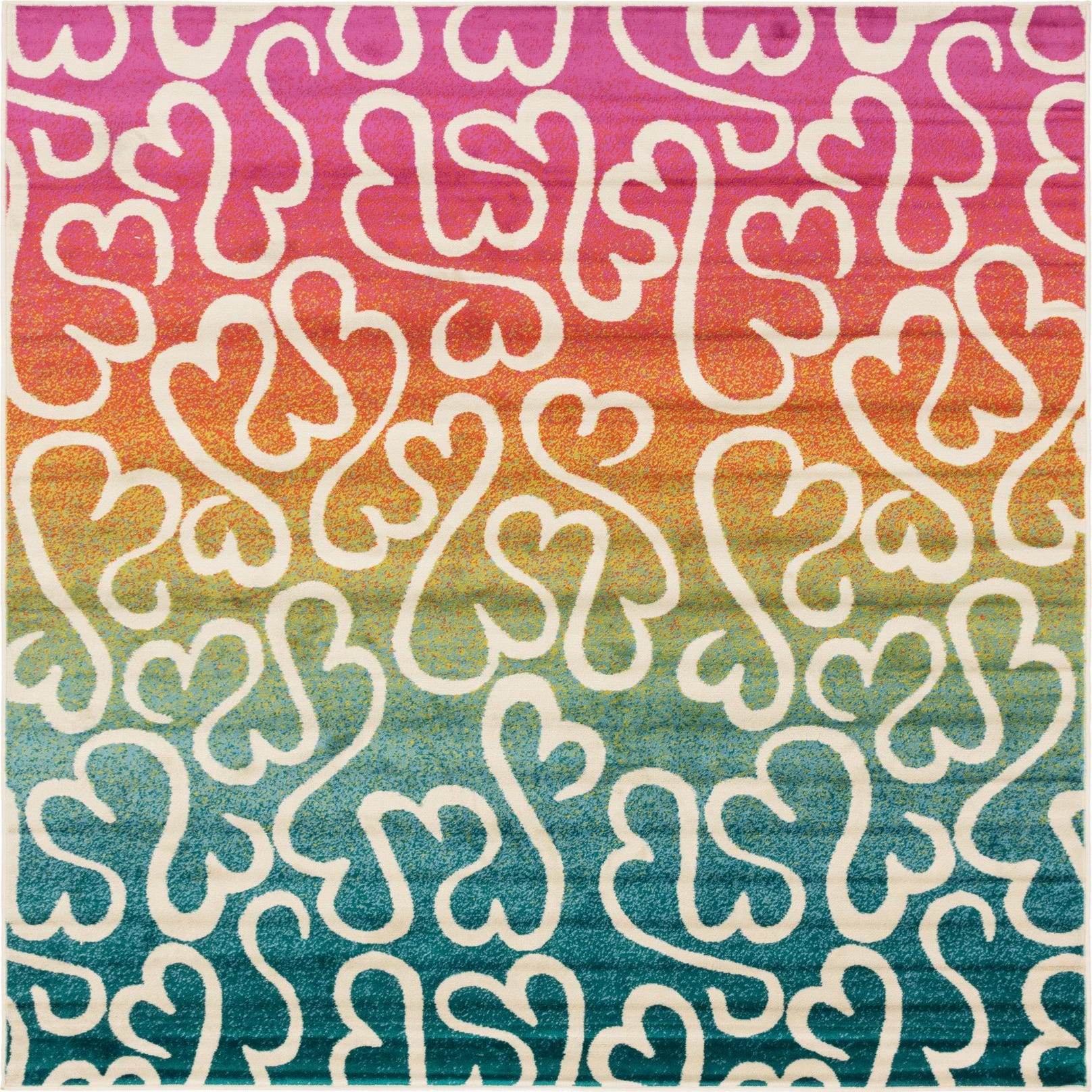 Primary color is Multi. Colors in this rug include: Multi, Ivory, Light Green, Orange, Teal, Pink, Red.