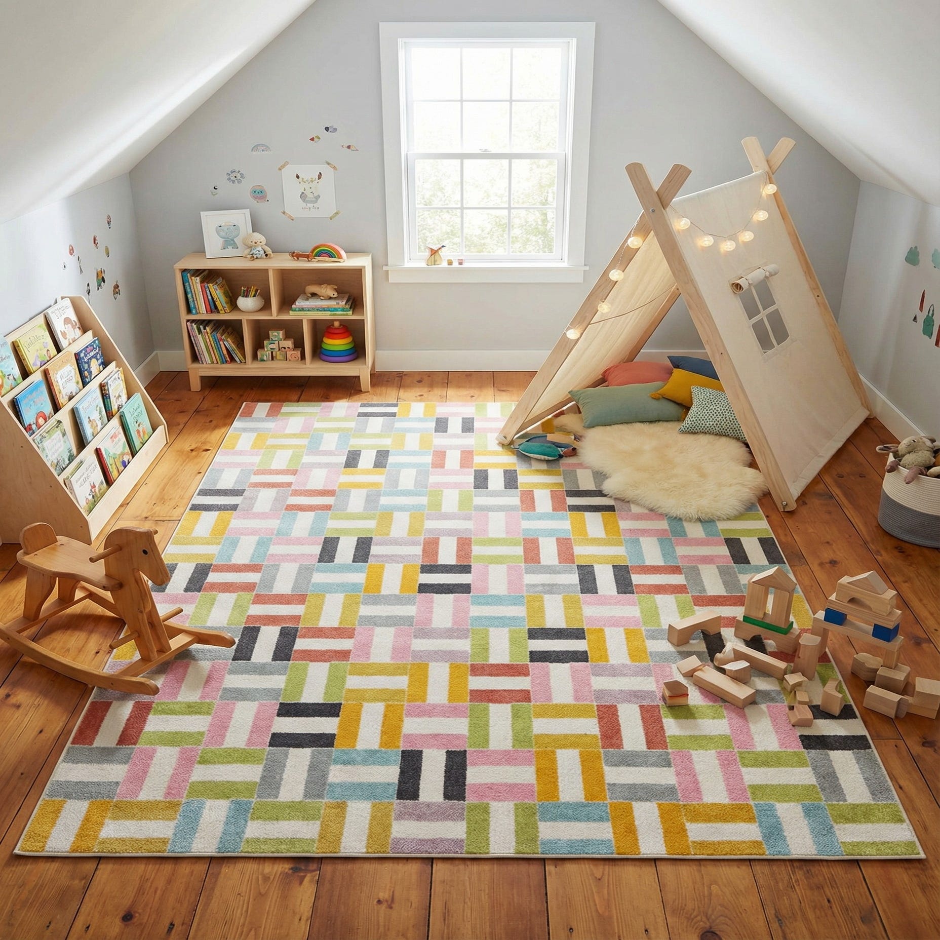 7' 10 x 10' Checkered Whimsy Kids Rug