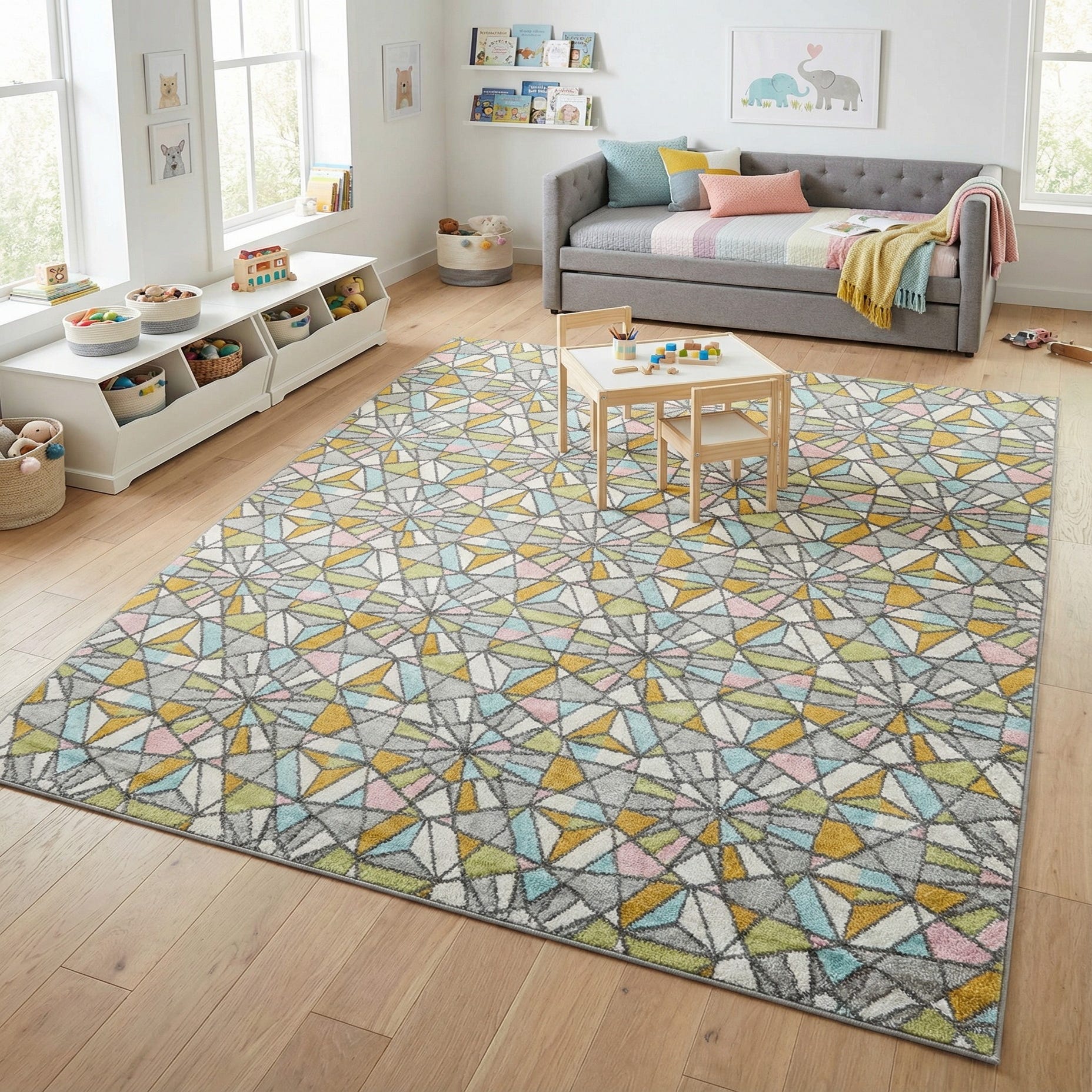 7' 10 x 10' Stained Glass Whimsy Kids Rug