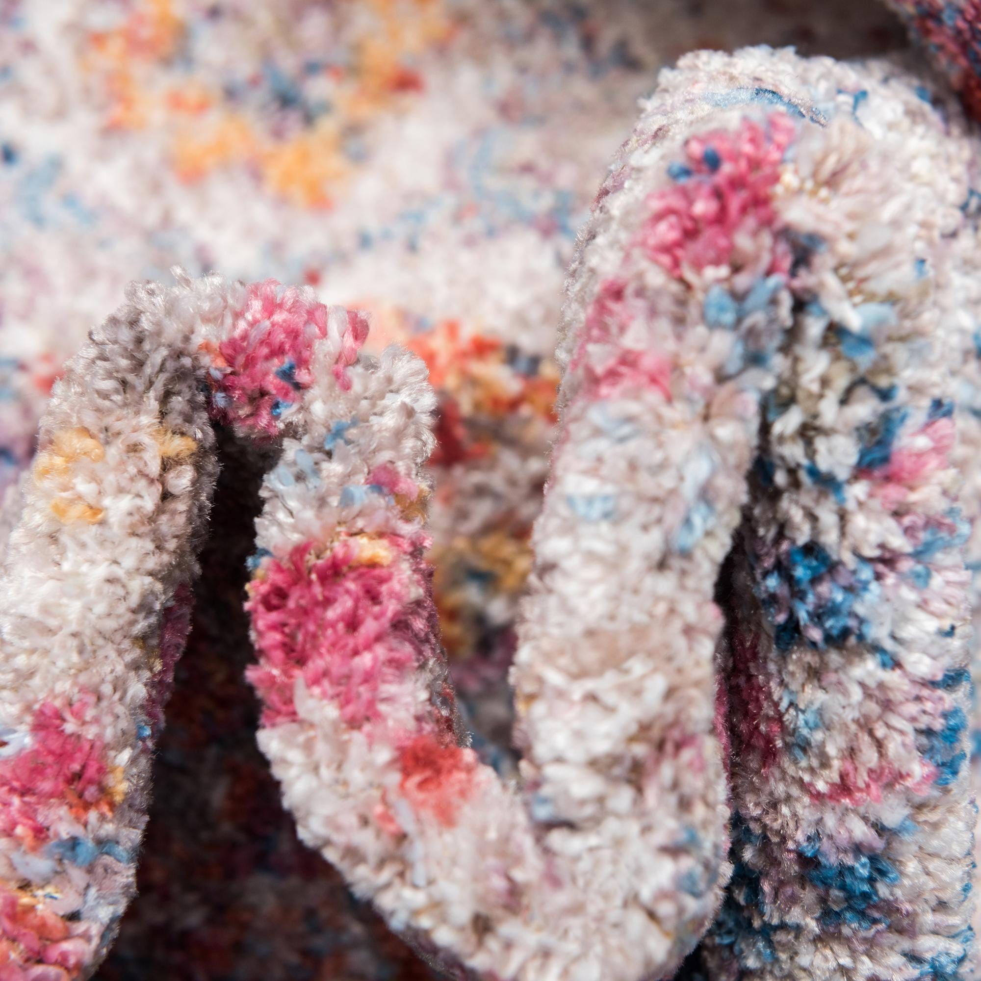 The rich color scheme and the distinctive pattern make it suitable for various interior design scenarios. This rug can serve as an artful foundation in a minimalist setting, adding a splash of color without overwhelming the space. Likewise, it would seamlessly integrate into a more eclectic aesthetic, where its diverse hues can be echoed in surrounding decor elements. Its size and visual impact make it an ideal choice for living rooms, dining areas or larger bedrooms where it can truly command attention.