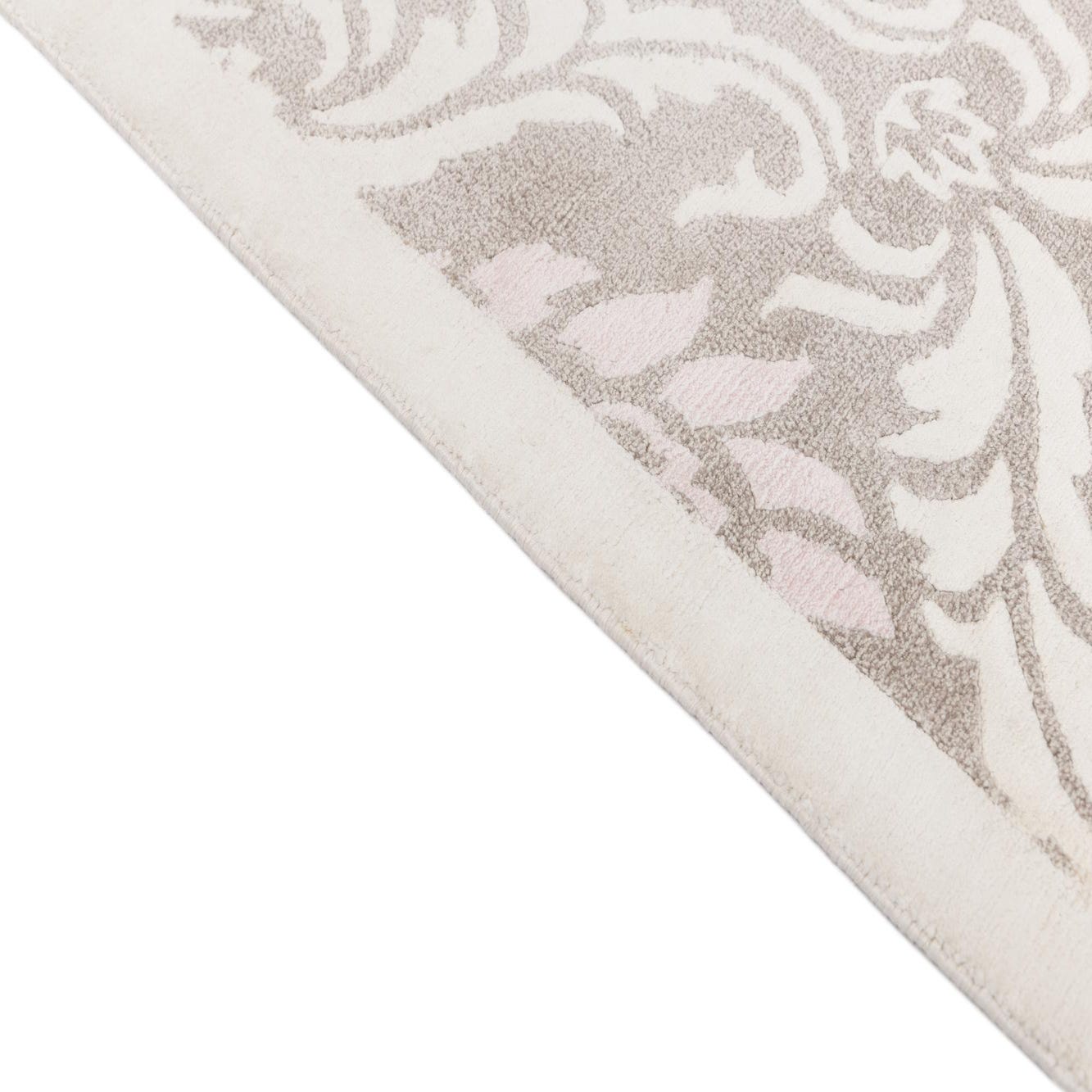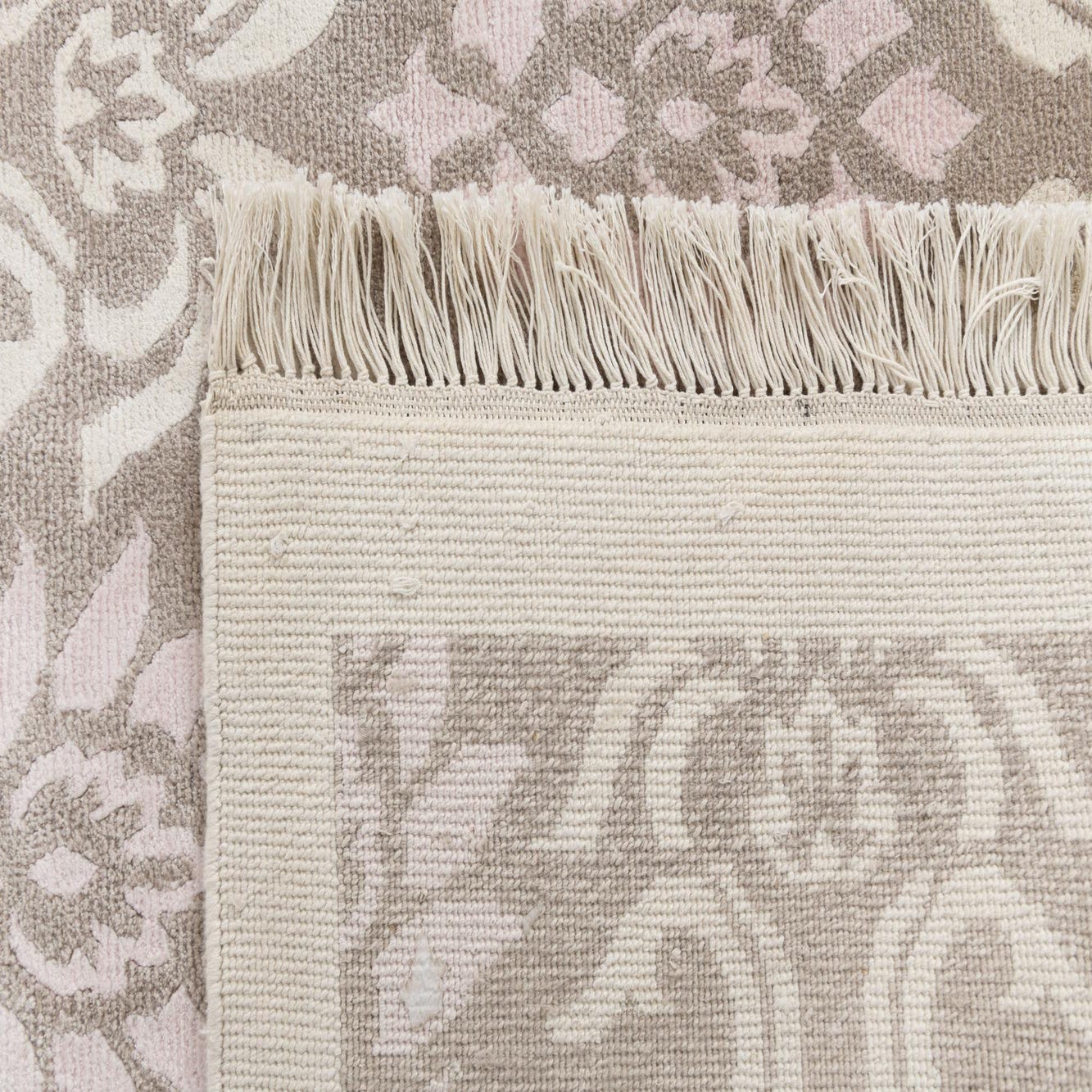 At 8 by 12 feet, the sizeable rug makes an impressive statement in spacious rooms. Its classic styling is particularly well-suited for traditional and transitional spaces, complementing both antique and contemporary furnishings. Additionally, the neutral and subtle pink palette provides a versatile foundation that harmonizes with a range of color schemes, from muted to more vibrant decors.