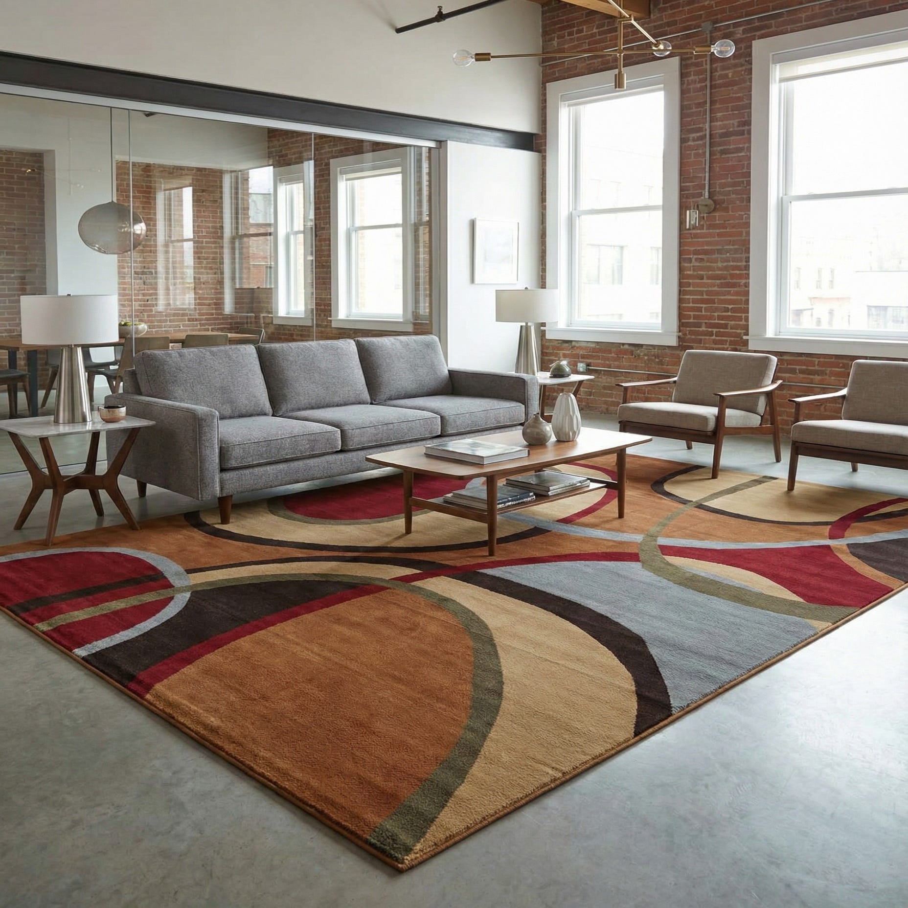 Machine-made of 100% polypropylene, the rug has a low, even pile with a smooth, slightly lustrous finish that feels soft underfoot yet holds its shape. It pairs well with modern living rooms and mid-century inspired interiors—place it under a seating group to anchor leather or neutral upholstery, or let it add warmth and color beneath a wood dining table. It also complements industrial lofts and home offices when combined with matte metal and warm oak tones, or with layered textiles and olive or rust accessories for a cozy, collected look.