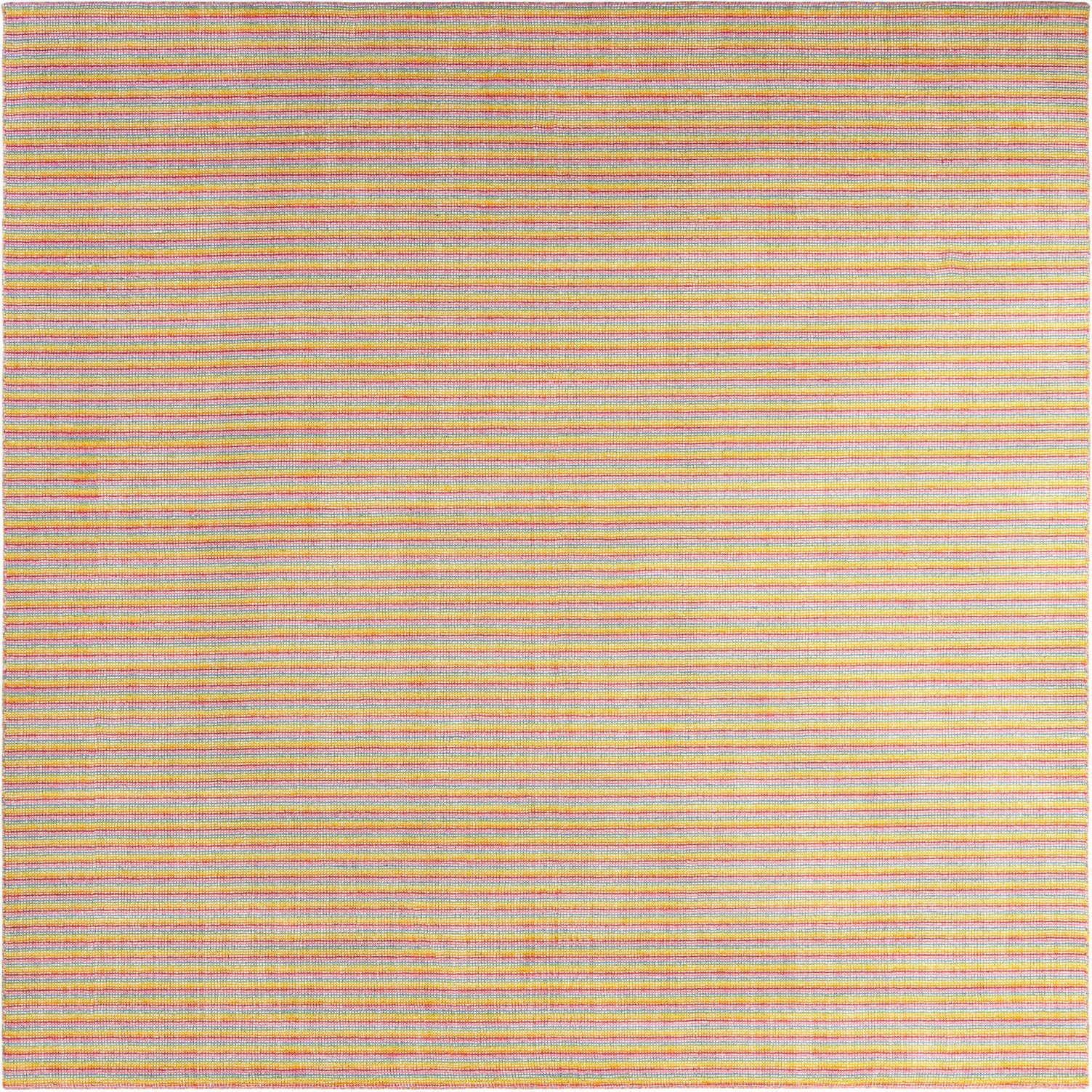 A vibrant 9x12 multi-colored rectangular wool area rug with thin horizontal stripes, perfect for a living room.