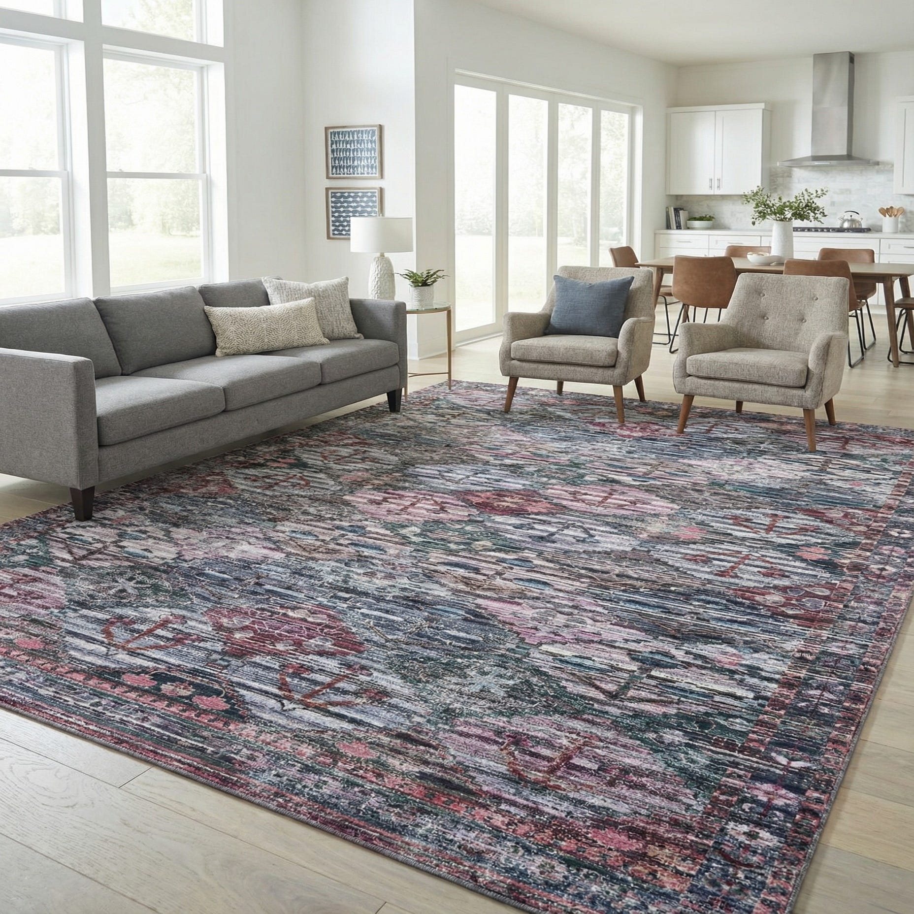 The versatility of this rug lies in its unique color blend and sophisticated pattern, making it a fit for an array of interior design themes, from contemporary to bohemian and eclectic. The rug's shed-free nature supports a clean and consistent look, suitable for placement in high-traffic areas such as living rooms, dining spaces, or entryways. Its ability to withstand regular washing and resist stains will appeal to those balancing aesthetics with functionality in creating a welcoming home environment.