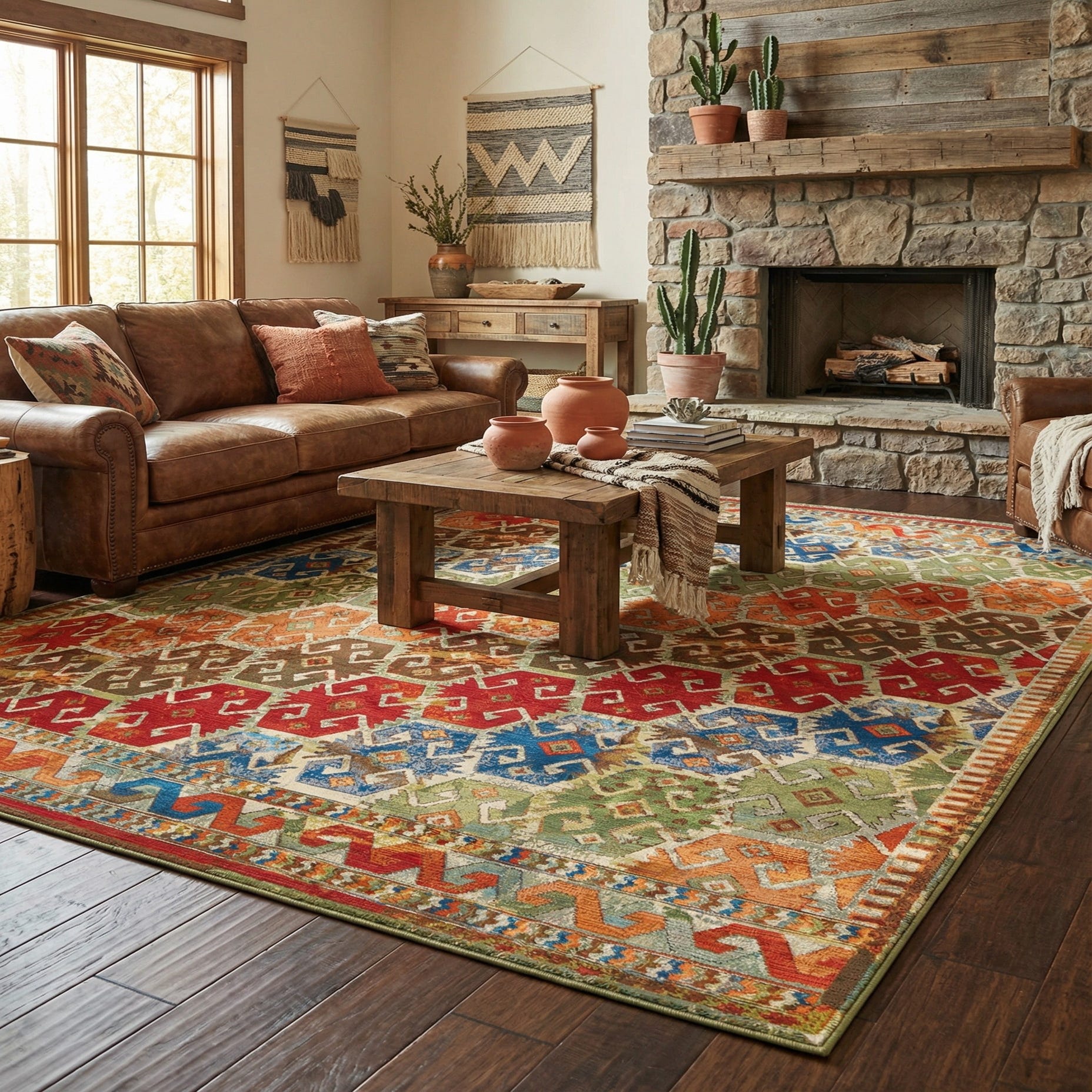 9' x 12' Washable Southwestern Indoor / Outdoor Rug
