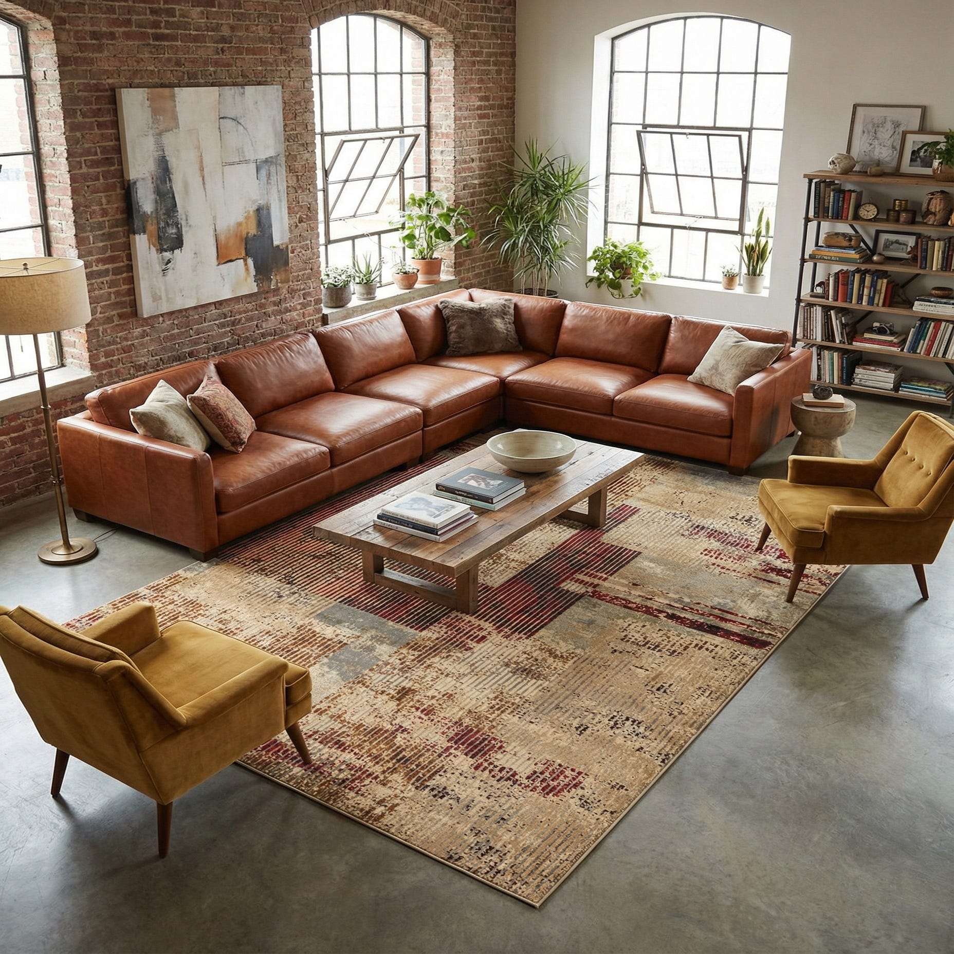 Machine-made from polypropylene, the rug has a low, tightly woven pile that lays flat and offers a smooth underfoot with slight texture where the linear pattern rises. It works well anchoring a living room seating group beneath a coffee table, grounding a dining area beneath a wood or metal table, or adding warmth to a home office or bedroom. Pair it with leather sofas, warm wood finishes, and matte metal accents for an urban or transitional scheme, or layer it over hardwood floors to introduce color and pattern without overwhelming the room.