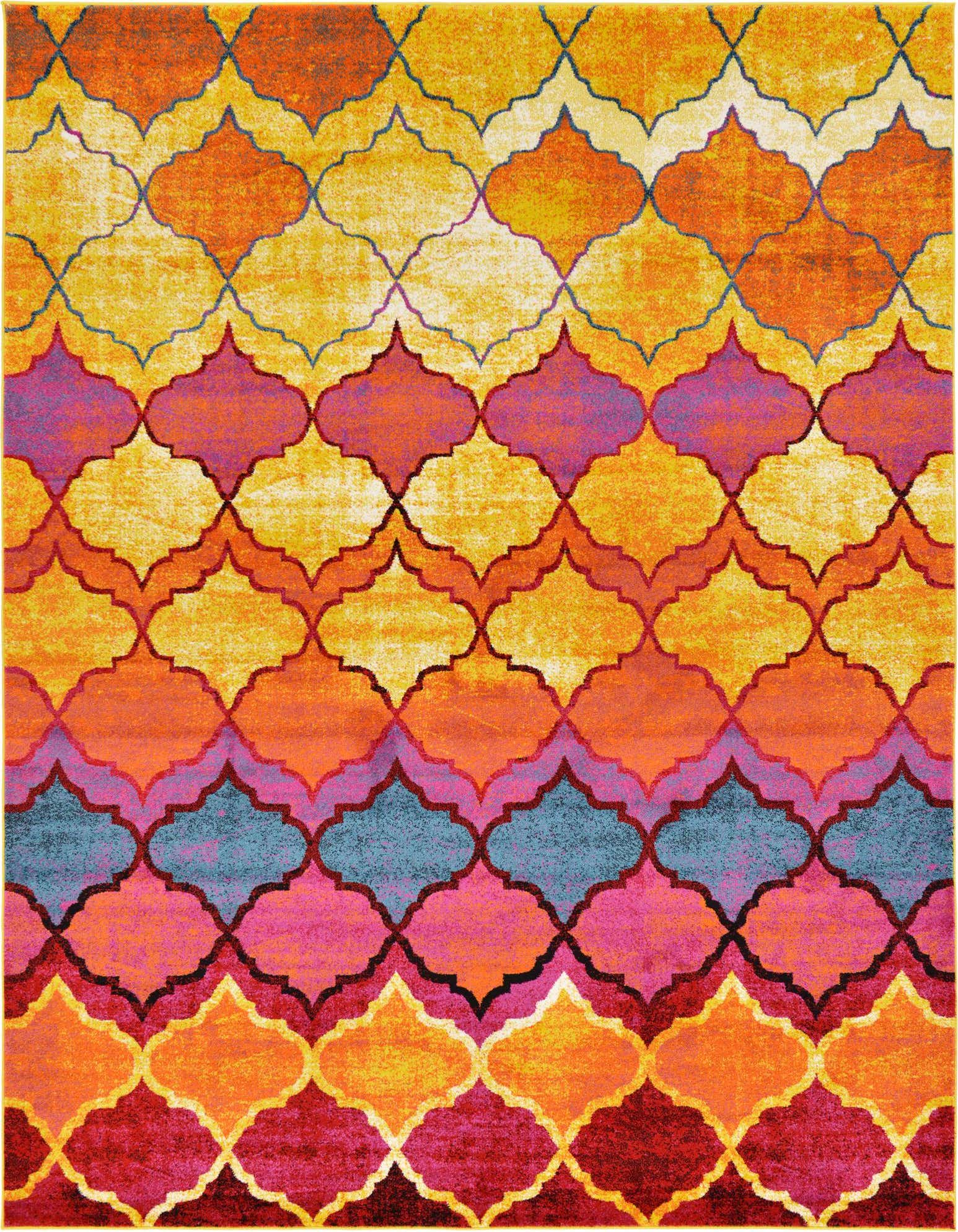 Primary color is Multi. Colors in this rug include: Multi, Blue, Green, Orange, Yellow, Pink, Red, Ivory, Burgundy.