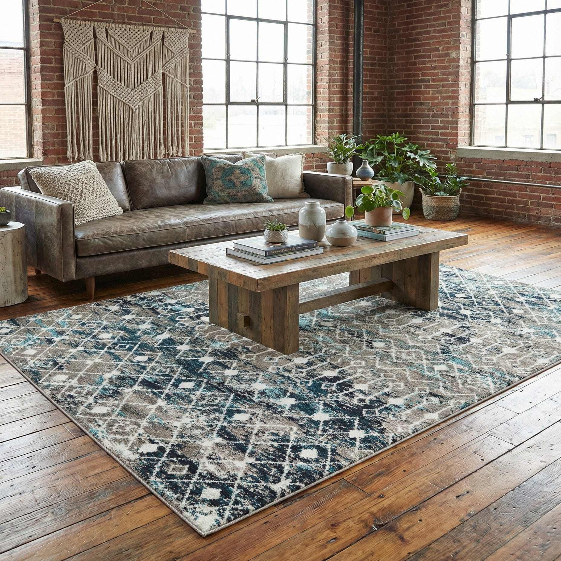 Primary color is Multi Gray Blue. Colors in this rug include: Multi Gray Blue, Beige, Ivory.