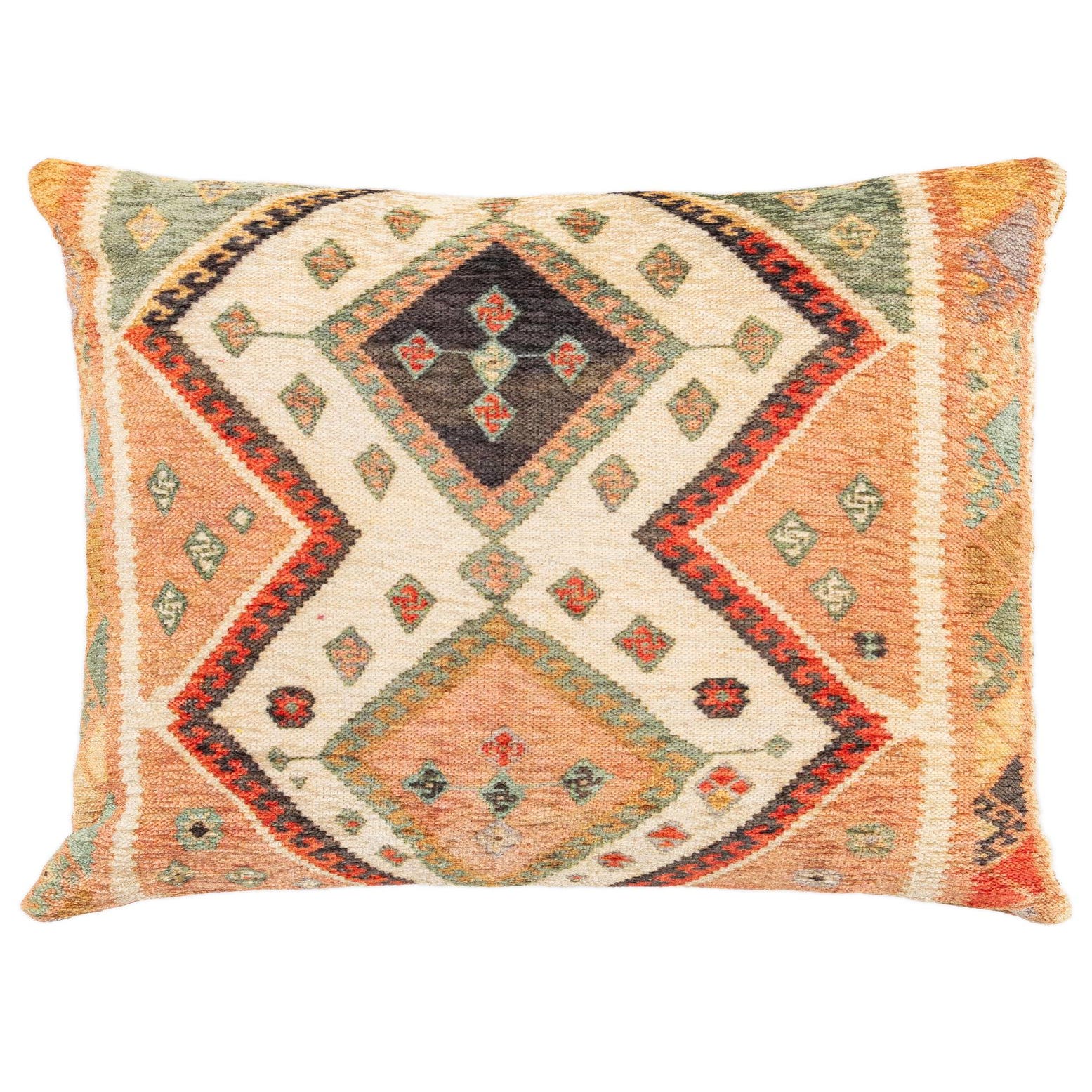 Primary color is Multi. Colors in this pillow include: Multi, Beige, Brown, Yellow, Orange, Olive, Red, Cream.