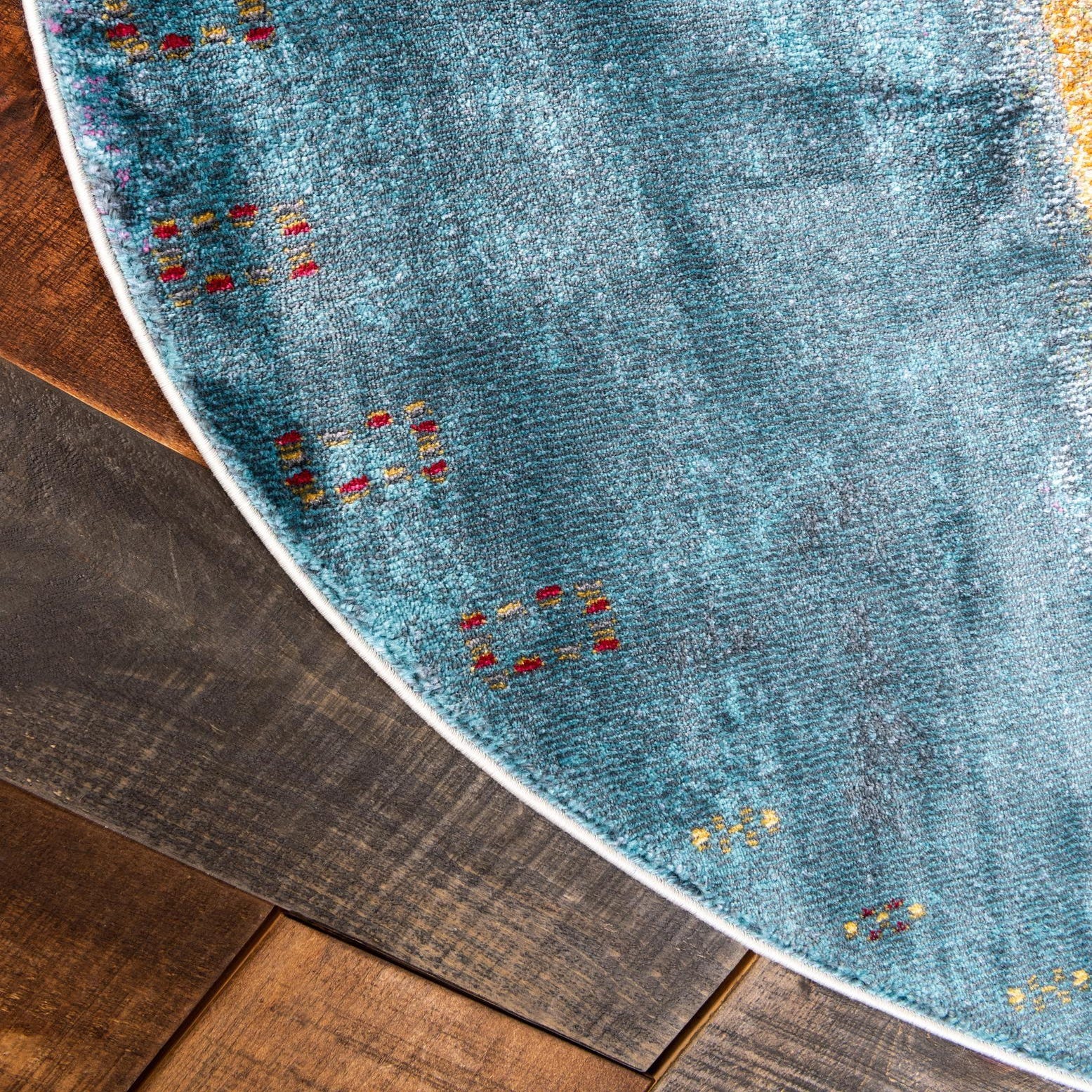 Primary color is Multi. Colors in this rug include: Multi, Blue, Orange, Gold, Red, Pink, Peach, Purple.