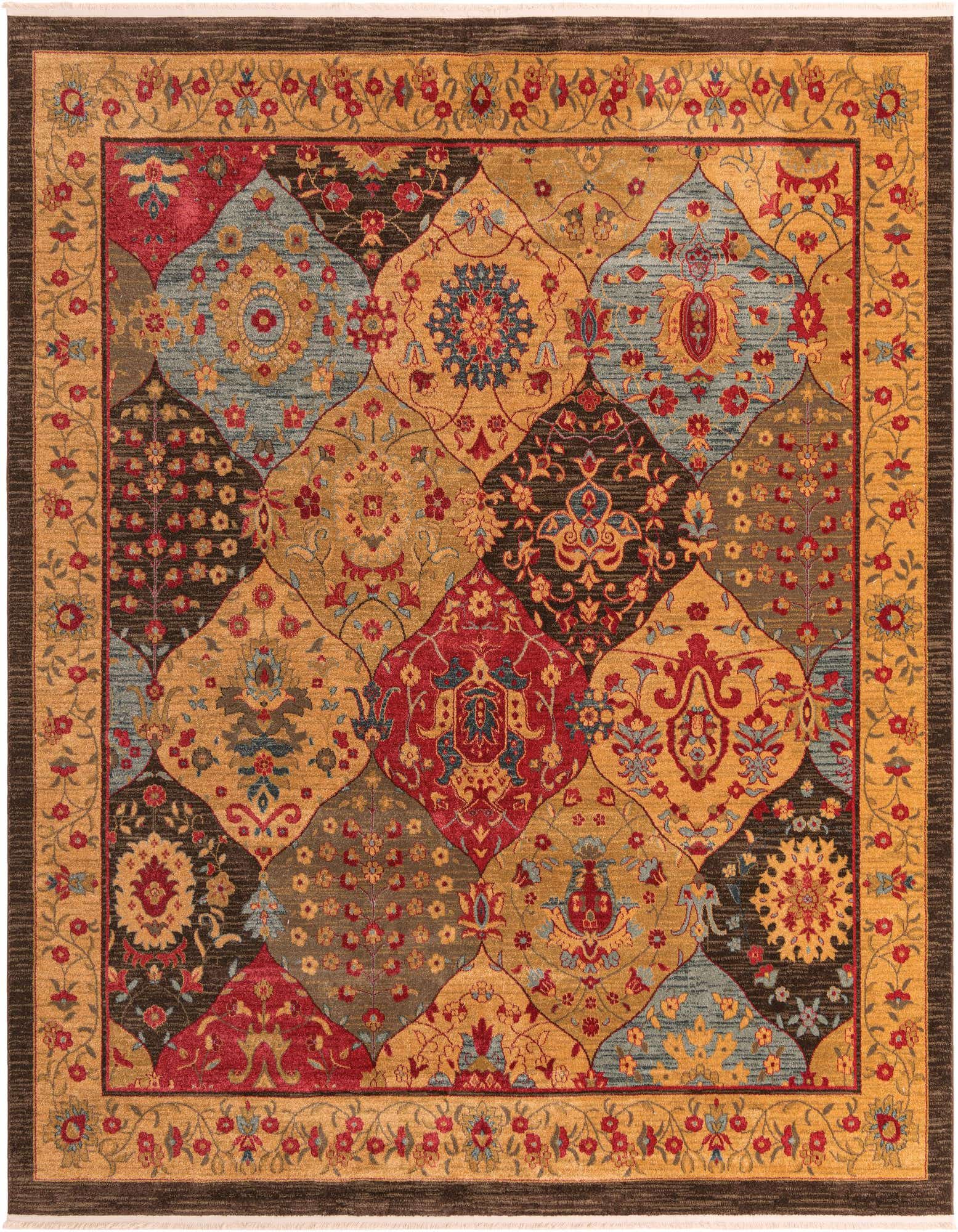 Primary color is Multi. Colors in this rug include: Multi, Tan, Brown, Red, Olive, Blue, Navy Blue.