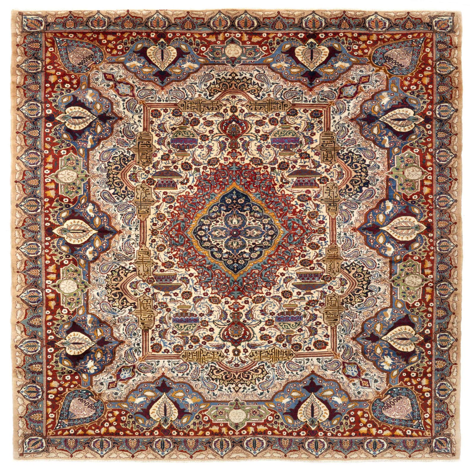 A large 10x12 rectangular Persian wool rug featuring an intricate multicolor floral and medallion pattern with a deep red border.