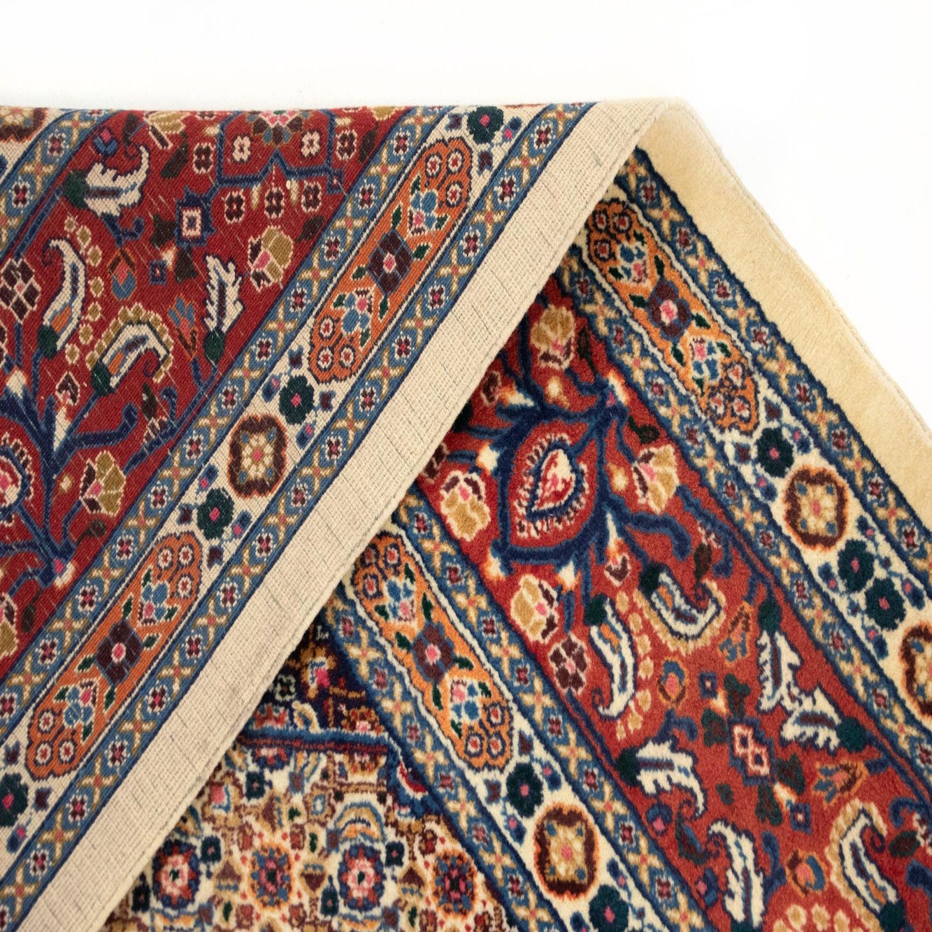 The Mood collection presents a meticulously hand-knotted 10x12 rug crafted from 100% wool, embodying both durability and comfort. This rug showcases a harmonious multicolor palette that brings a vibrant yet sophisticated presence to any space. Its central medallion is an intricate focal point, surrounded by repeating motifs and border detailing that resonate with traditional design.