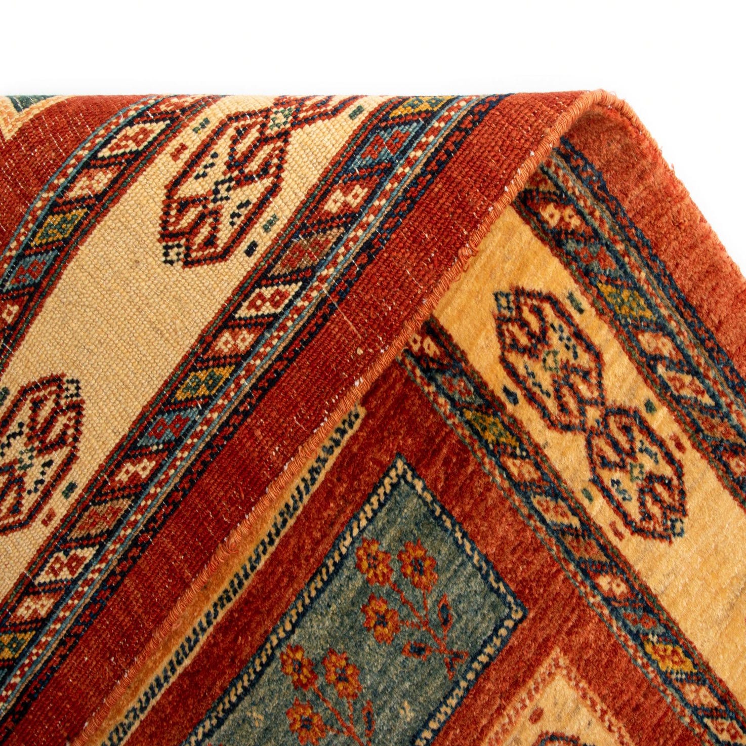Given its vibrant color palette and folkloric design elements, this Luribaft runner would be well-suited for spaces that embrace eclectic, bohemian, or traditional decor. It is an excellent choice for adding color and pattern to hallways, elongated entryways, or alongside a kitchen island, where it would contribute to the visual warmth and texture of the environment.