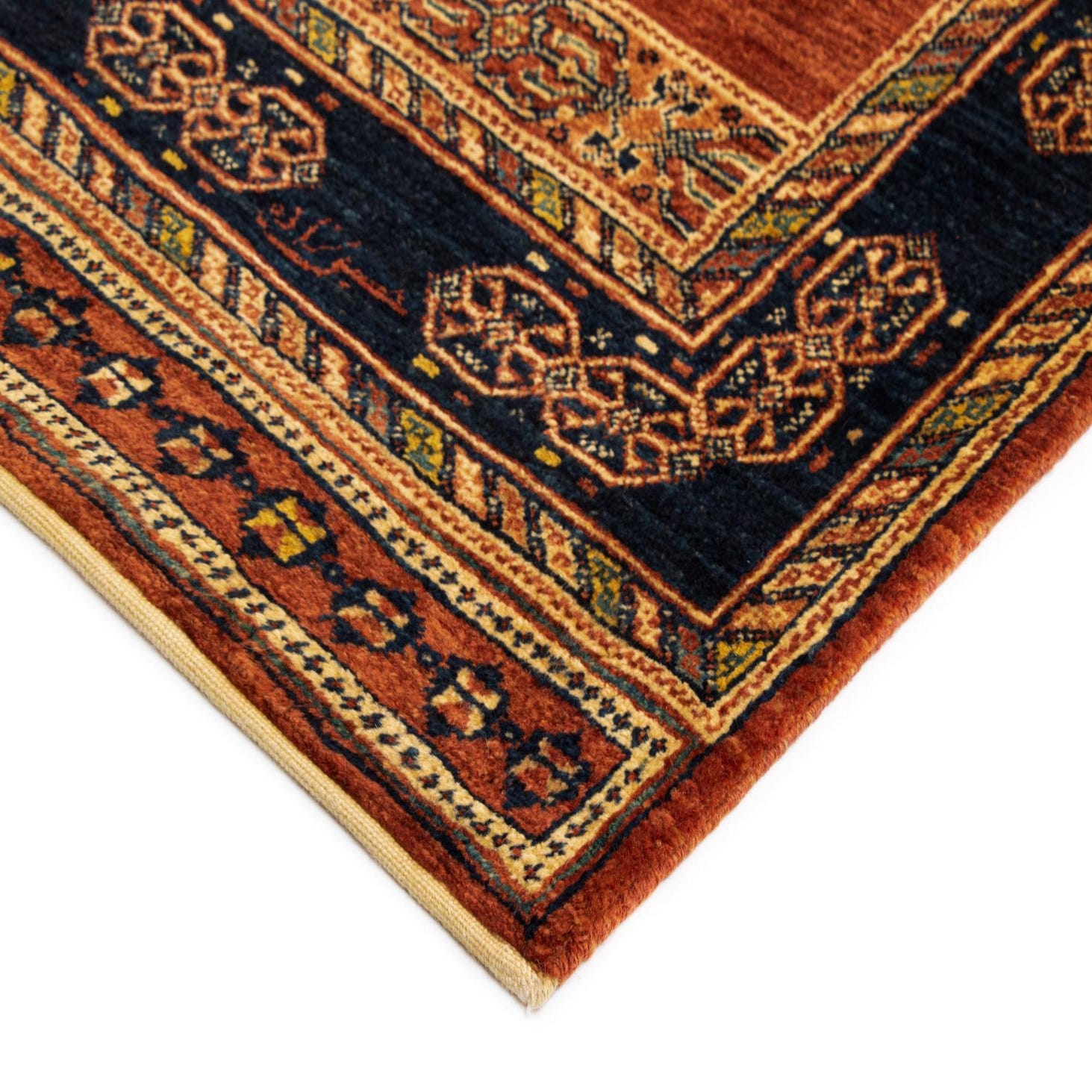 This runner would integrate seamlessly into interiors that celebrate a bohemian aesthetic, traditional settings, or spaces that embrace rich color and pattern. It would serve as a captivating visual anchor in a neutral-toned hallway or add depth to an eclectic mix of textiles and decor in a living room or den.
