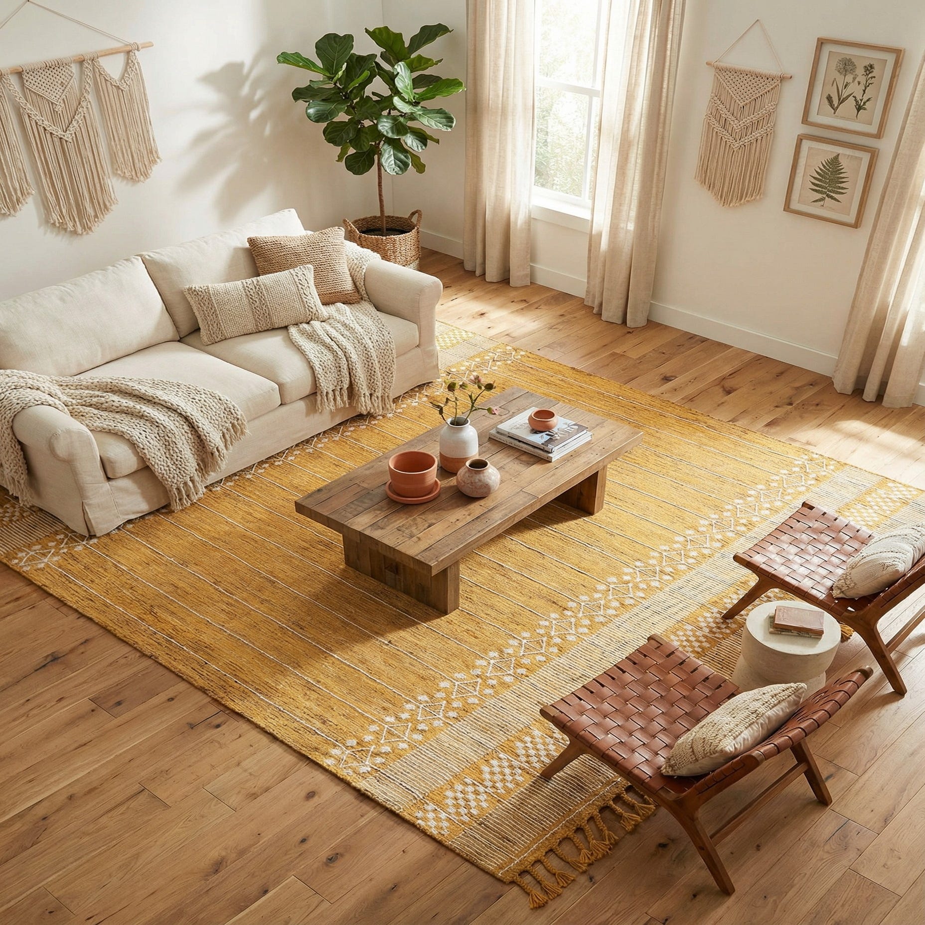 Primary color is Mustard Yellow. Colors in this rug include: Mustard Yellow, Ivory.