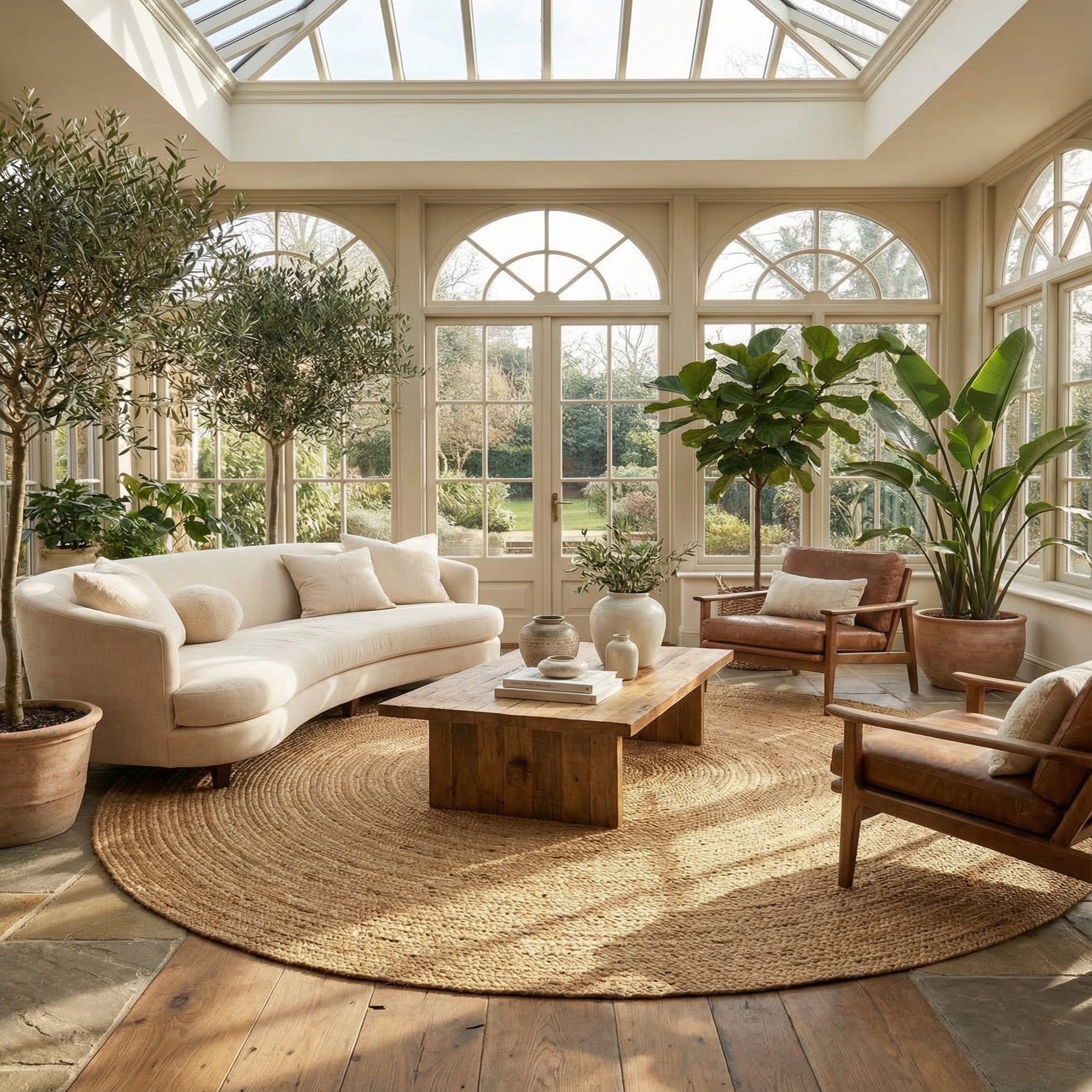 The Braided Jute Luxe rug is a sophisticated and durable addition to any space, handcrafted from 100% jute with a braided texture that offers an earthy and natural appeal. This 10-foot round rug is constructed using a flatweave technique, ensuring a shed-free and low-maintenance experience. Its circular design features concentric circles that showcase the variations in the natural tones, with the background color predominantly a warm Natural hue that complements a variety of color palettes.