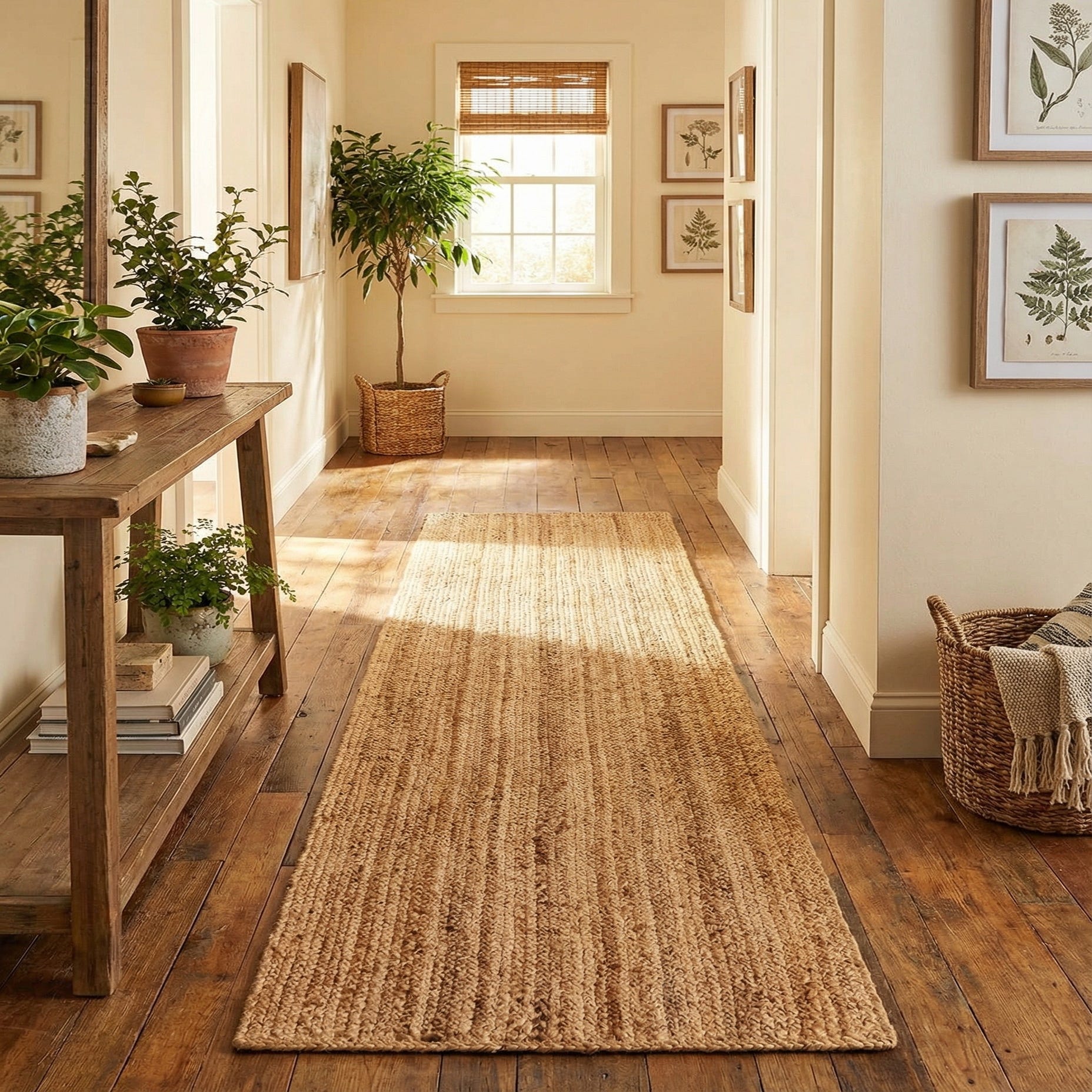 This Braided Jute Luxe Runner is well-suited for a range of décor styles. Its organic aesthetic complements rustic and farmhouse designs, while its minimalist appeal makes it equally at home in Scandinavian or coastal-inspired settings. Its versatility extends to placement as well, being an excellent choice for entryways, hallways, or alongside kitchen counters where it provides a natural and grounding element.
