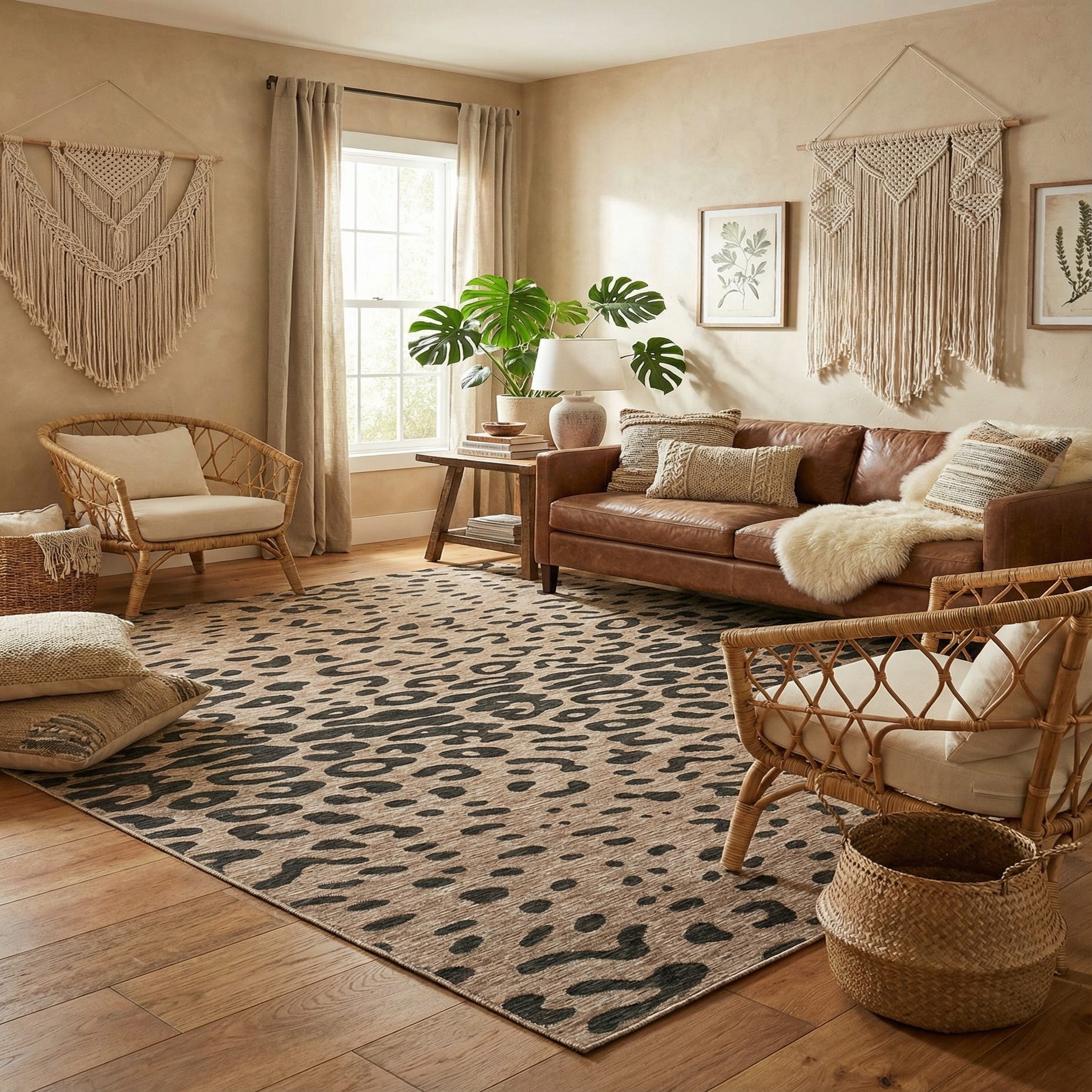This Outdoor Safari rug is designed to enhance a variety of decor scenarios. Its graphic pattern can be a strong anchor for minimalist modern aesthetics, adding depth and interest without overwhelming the space. It can also seamlessly integrate into more eclectic layouts, where its classic color scheme harmonizes with a range of furniture styles and color palettes.