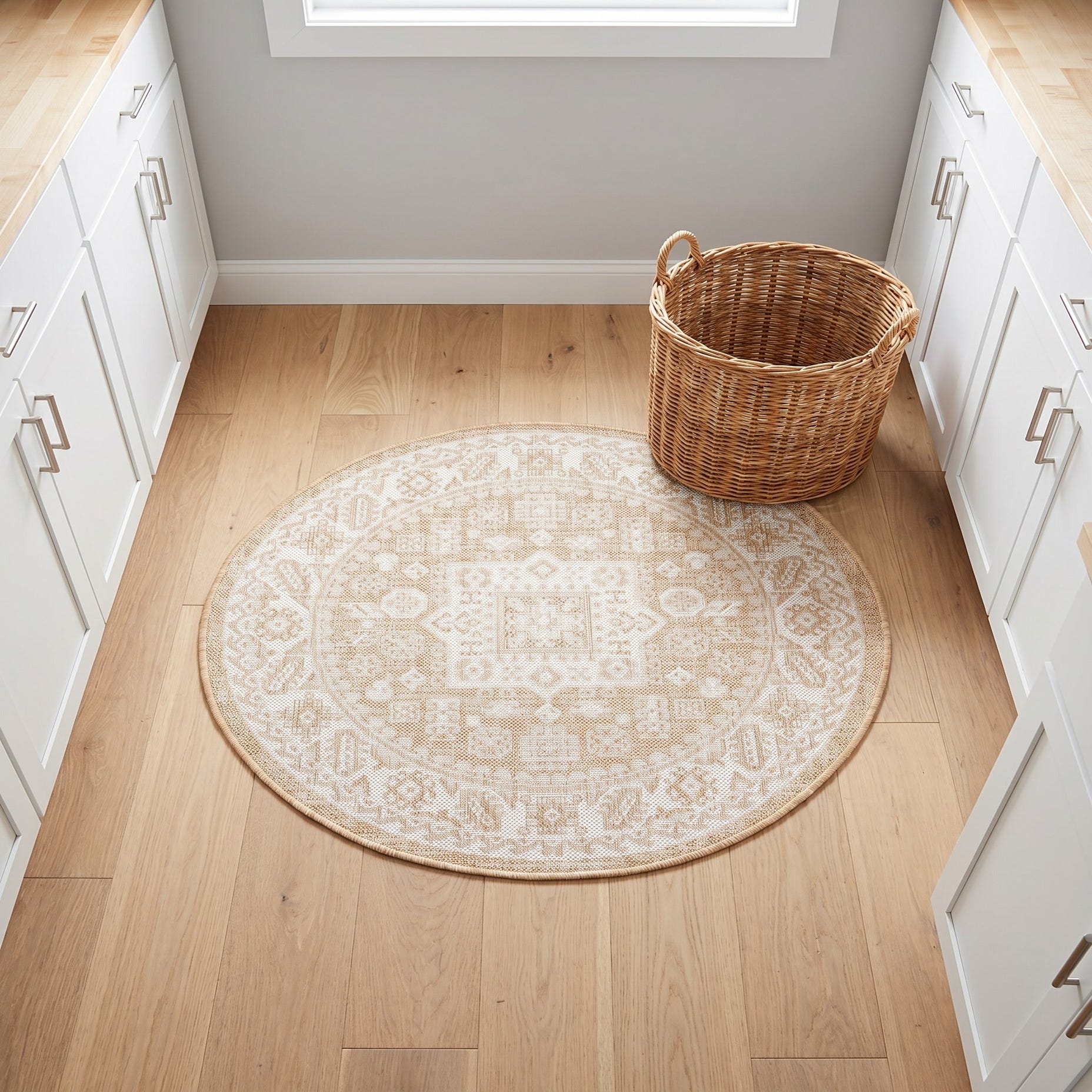 3' x 3' Easy-Clean Aztec Indoor / Outdoor Round Rug