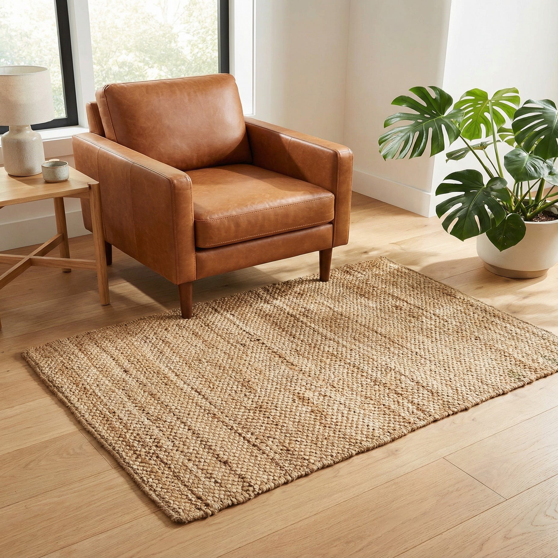 Well-suited to casual and layered interiors, this rug works nicely in entryways, kitchens, sunrooms, or beside a bed where a touch of texture is needed. It complements warm woods, rattan and wicker pieces, linen upholstery, and neutral modern furnishings, and fits styles from coastal and farmhouse to Scandinavian and relaxed bohemian. Pair it with a patterned runner or a soft area rug for contrast, or use it alone to bring an earthy, textural base to the room.