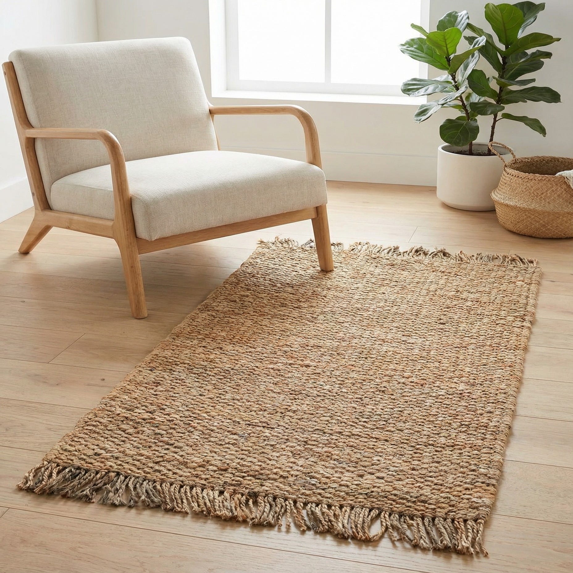 This piece works well in relaxed, natural interiors—pair it with warm wood furniture, rattan accents, and linen textiles for a coastal or bohemian vibe, or layer it over a larger neutral rug to add texture in a living room. It also fits perfectly in busy transition areas like an entryway or kitchen, and can be placed beside a bed to bring a warm, organic base to a bedroom scheme.