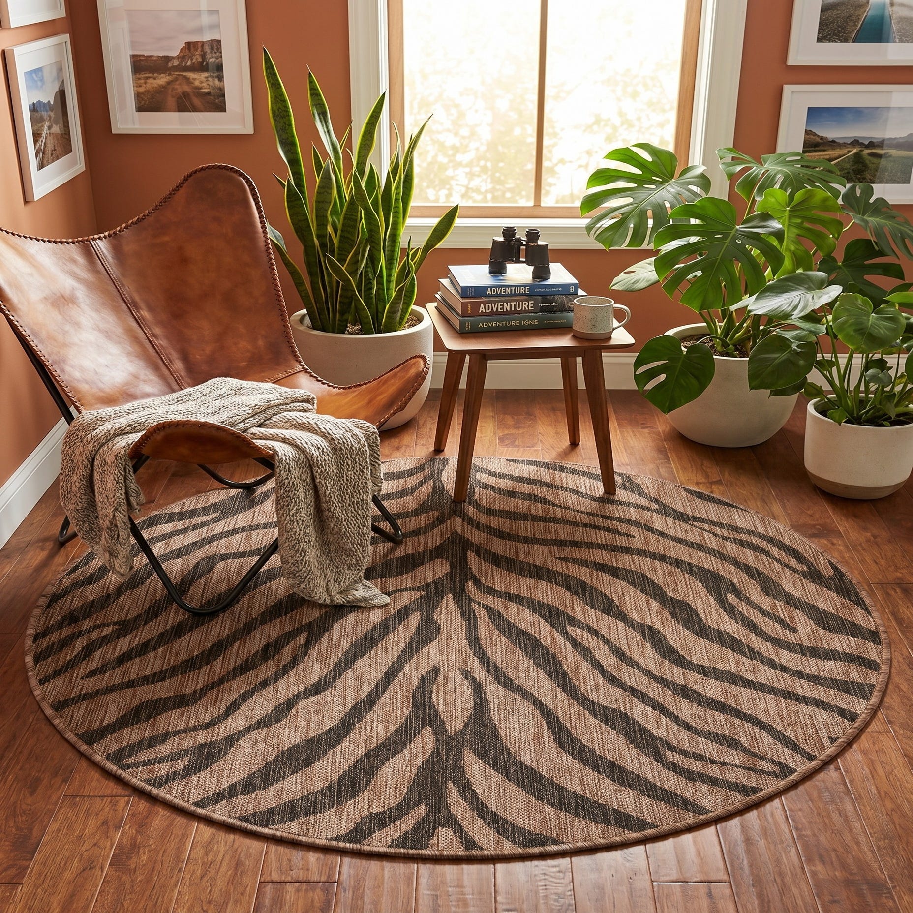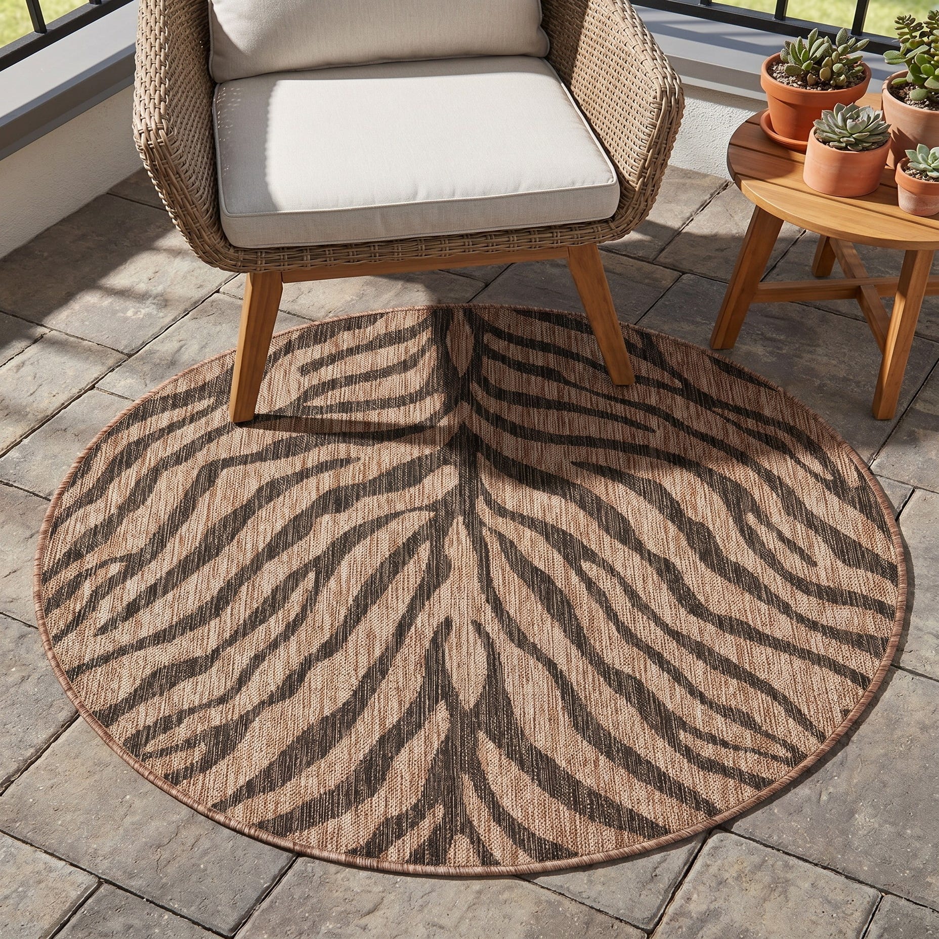 4' x 4' Easy-Clean Safari Indoor / Outdoor Round Rug