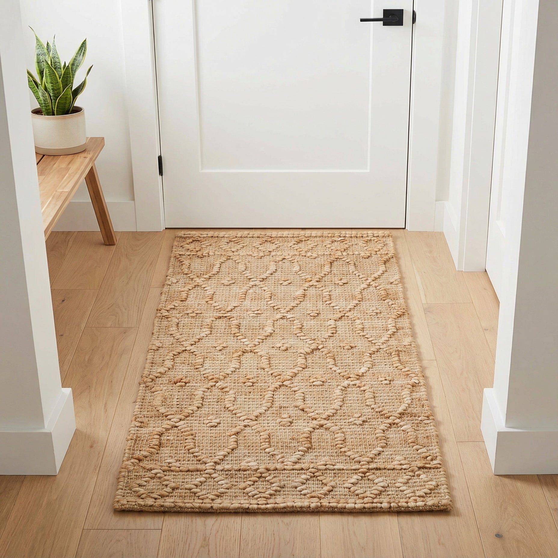 Due to the organic tones and nature-inspired texture, this runner is well-suited for spaces that aim to evoke a warm, inviting atmosphere. It would complement settings that draw on natural elements, including bohemian, coastal, or Scandinavian-inspired decors, as well as minimalist environments that benefit from a touch of organic charisma. Furthermore, the runner is adept at being a subtle yet impactful floor covering in entryways, hallways, and alongside kitchen counters, where its resilient composition meets the demands of high foot traffic.