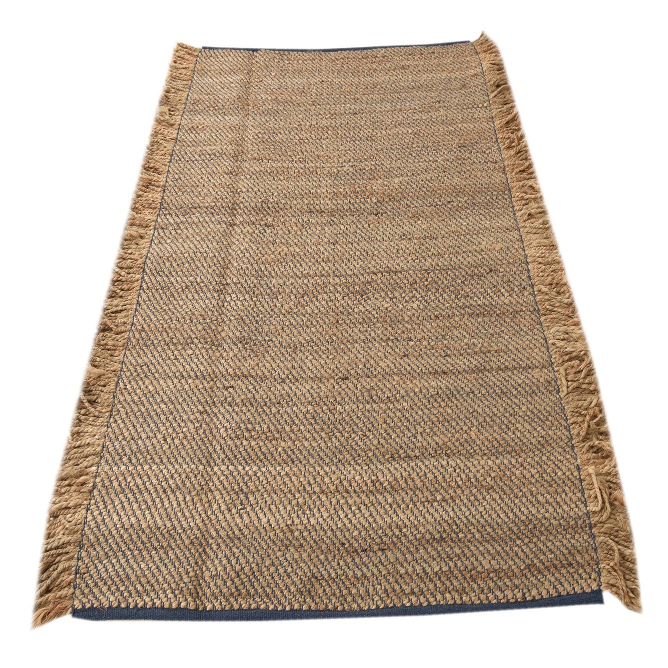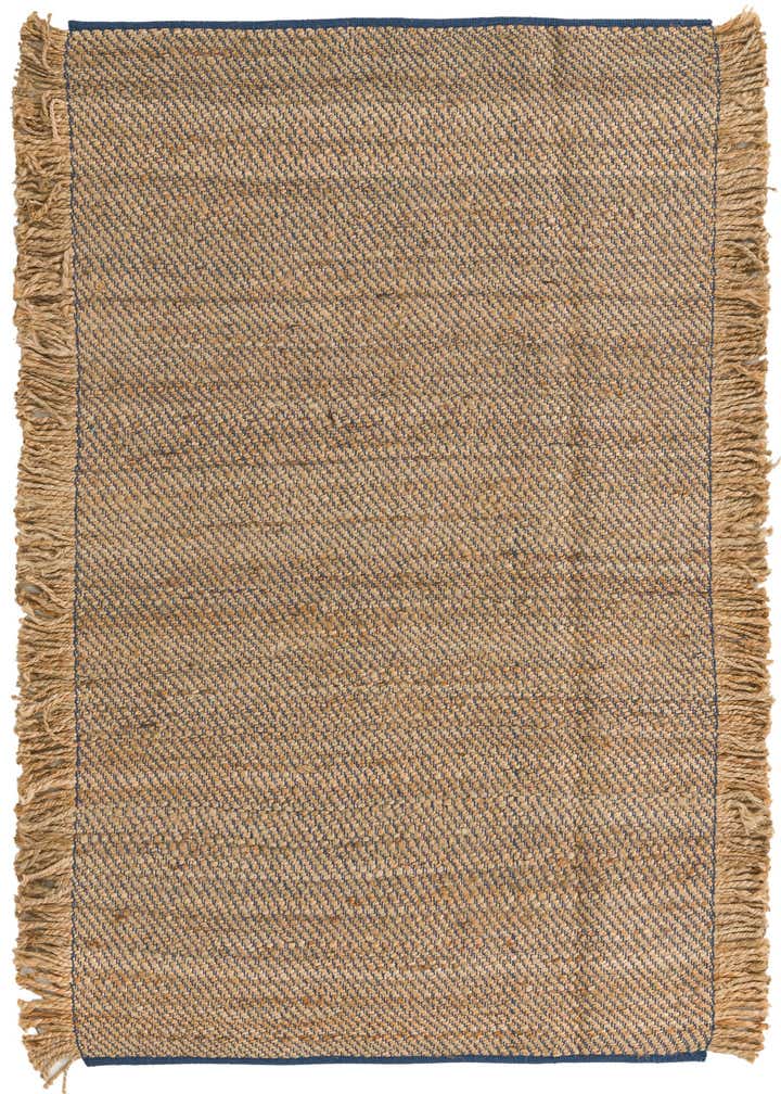 Primary color is Natural. Colors in this rug include: Natural, Navy Blue.