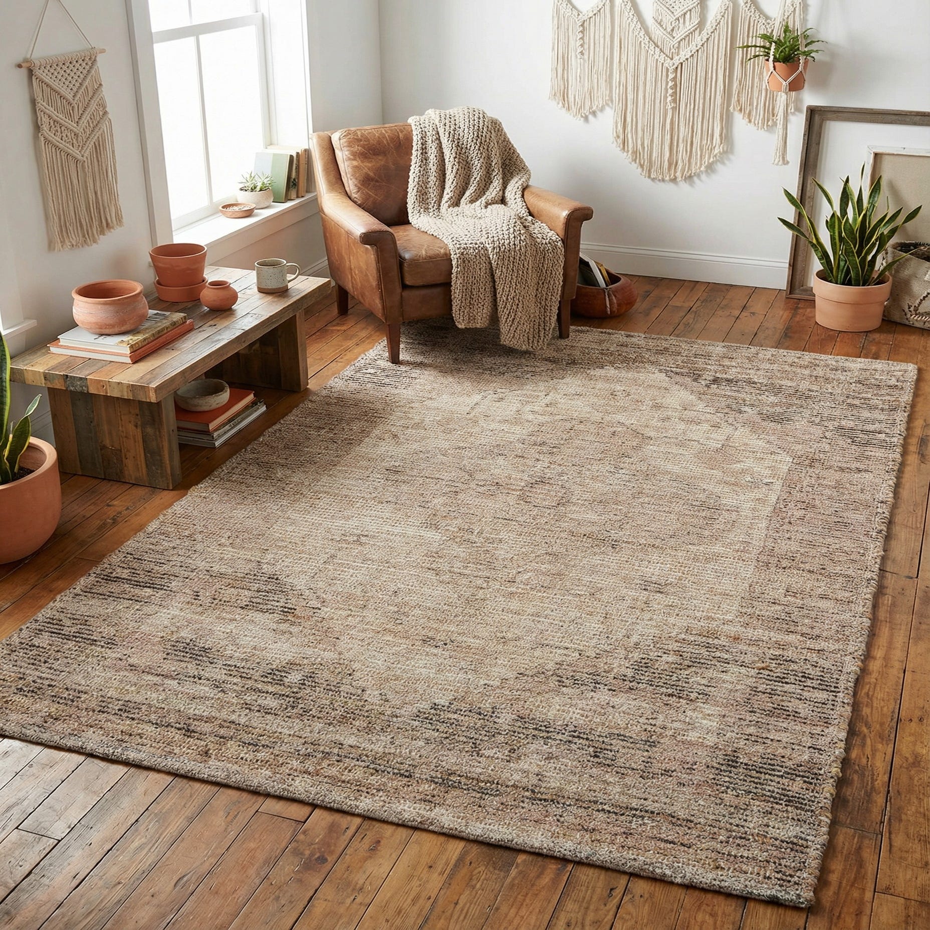 Given its earthy and versatile color palette, this rug would be well-suited for interiors that lean towards rustic, modern, or Scandinavian designs. Its understated elegance could also make it a fine choice for a minimalist space, where it would add warmth and texture without overwhelming. The size of this rug makes it a fitting addition for small to medium living spaces, under a coffee table, or in an intimate seating area. The Chenille Jute rug's composition ensures resilience, making it a practical option for areas that experience regular foot traffic.
