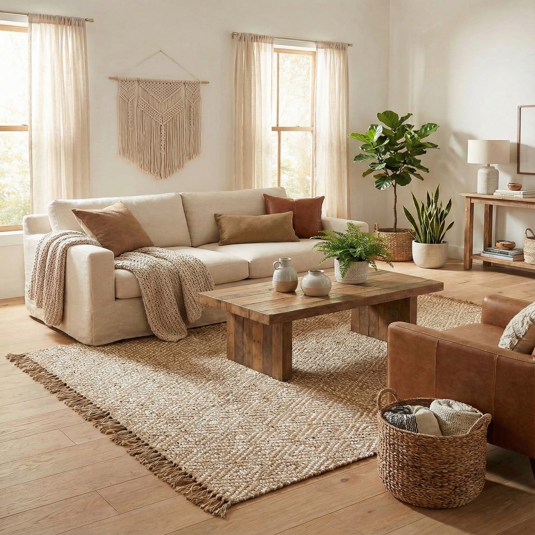 This rug fits well in casual and contemporary interiors where texture and neutral tones are needed to anchor a space. Place it beneath a coffee table to define a living area, layer it at the foot of a bed for added dimension, or use it in a dining nook to introduce organic warmth. The natural and ivory palette pairs easily with light woods, rattan, linen upholstery, and muted accent colors, making it a versatile choice for coastal, farmhouse, bohemian, or modern rustic looks.